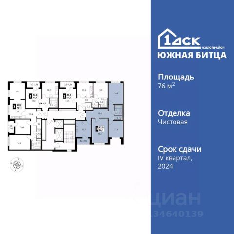 Продаётся 3-к квартира номер 701 общей площадью 78.3 кв.м. на 16-м этаже 23 этажного здания. Отделка Whitebox. Цена с учётом скидки.