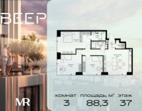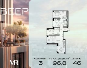 Прямая продажа от застройщика. В ЖК Сет продается 3-комнатная квартира площадью 90.31 м², расположенная в корпусе Б, на 54 этаже 59 этажного дома. Сет имеет стратегически выгодное расположение в ЗАО, в районе с большой историей и блестящим будущим: между природной зоной долины реки Сетунь и Кутузовским проспектом. В рамках возведения первой очереди предусмотрено три корпуса высотой 18, 45 и 59 этажей. На верхних этажах спроектированы общедоступные смотровые площадки с панорамным обзором на центр столицы. Преимущества проекта: • Функциональные планировочные решения • Контроль проникновения через входную дверь • Система управления освещением и температурой в квартире • Система защиты от протечек с функцией перекрытия воды • Вход в подъезд по биометрическим считывателям Face ID • Скоростные лифты • Двухуровневый подземный охраняемый паркинг на 495 машино-мест Застройка Сет включает в себя не только жилые корпуса, но и инфраструктурные объекты. Все необходимое для повседневного комфорта будет расположено в шаговой доступности: • Фитнес-Клуб с бассейном • Ведущая городская школа, детский сад и школа искусств • Центр культуры и досуга • Медицинский центр • Кафе и рестораны Расположение комплекса: Пешком: • Метро "Давыдково" - 17 минут • Парк "Долина реки Сетунь" - 3 минуты • Открытие новых станций метро в шаговой доступности в будущем Инфраструктура: Разнообразить свой день резиденты Веер смогут также проводя больше времени на свежем воздухе. Двор разделен на 4 зоны разных эмоций и действий, которые пересечены и соединены веерными прогулочными маршрутами: • Спортивная площадка устроена в глубине "Кленовой рощи" • В "Чайном домике" будет создан навес с утеплением для отдыха в любую погоду • Площадки для детей воплотятся в "Волшебный лес" с цветами, зеркалами и световым дизайном • "Центральная площадь" устроена у водного оазиса живописного пруда. На машине: • "Москва-Сити" - 15 минут • Садовое кольцо - 20 минут • ТЦ "Океания" - 8 минут • ТЦ "Времена года" - 13 минут • Сколково - 12 минут • Гребной канал - 17 минут Компания MR предлагает своим клиентам специальные условия приобретения квартир в рамках программ ипотечного кредитования от банков-партнеров.