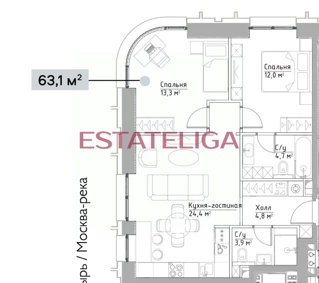 Благодаря линейному расположению корпусов из большинства квартир будут открываться потрясающие виды на исторический центр города и Москву-реку.