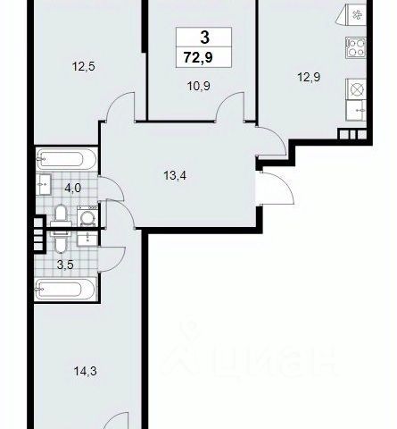 Продается трехкомнатная квартира без отделки в 9 квартале города-парка "Первый Московский". Общая площадь квартиры - 74,1 кв. м, этаж 13 из 19. Срок сдачи - 2 квартал 2027 года. Тип дома - монолитный. Только до 11.05.26 г. - АКЦИЯ "ПОЙМАЙ МАЙ" : -скидки на покупку квартиры -выгодные условия на приобретение квартиры в ипотеку -бронирование 5 тыс.₽ входит в стоимость квартиры -бесплатная регистрация договора -гарантированные подарки при покупке *срок проведения акции с 25.04.26 г. по 11.05.26 г. Информацию об организаторе акции, правилах ее проведения, количестве призов, сроках, месте и порядке их получения уточняйте в офисе продаж. Корпус состоит из 3 секций. Город-парк "Первый Московский" расположен всего в 7 км по Киевскому шоссе от МКАД на территории Новой Москвы. Из города-парка прямой выезд на Киевское шоссе и трассу Солнцево-Бутово-Варшавское шоссе. ТРАНСПОРТНАЯ ДОСТУПНОСТЬ: - 5 мин. на личном автомобиле или 10 мин. на автобусе 189, 147, 193 до станции метро "Филатов Луг" - 5 мин. на личном автомобиле или 12 мин. на автобусе 863 до станции метро "Саларьево" - 6 мин. на личном автомобиле или 15 мин. на автобусе 333 до станции метро "Рассказовка" РАЗВИТАЯ ИНФРАСТРУКТУРА В ОКРУЖЕНИИ: - общеобразовательная школа 2120 (корпуса д1, д7, ш1-ш5) - детский сад 2120 (корпуса д2, д9) - школа искусств - городская больница, детская поликлиника, филиал 5 - подстанция скорой помощи 58 и пожарно-спасательный центр 313 - отдел полиции, отдел ГИБДД - торговые центры "Столица" и "Новомосковский" - стадион, каток, бассейн - кафе, продуктовые магазины, аптеки, фитнес-центры, салоны красоты и пр. БЛАГОУСТРОЙСТВО: - дворы без машин - разнообразные детские площадки и развивающие комплексы - детские площадки разделены по возрастным группам - максимальная близость корпуса к парку "Филатов луг" - озеленение территории с учетом зонирования, островками для отдыха ОСОБЕННОСТИ АРХИТЕКТУРЫ: - безбарьерные входные группы - велопарковка на -1 этаже - колясочные в каждой входной группе - коммерческие помещения на 1 этаже в трех секциях - кладовые помещения расположены на жилых этажах и на -1 этаже - в каждой секции корпуса - 4 лифта: 2 пассажирских, 2 грузовых - видеонаблюдение установленное в холлах первых этажей, у подъездов и на прилегающей территории АВТОРСКИЙ ДИЗАЙН: Входные группы выполнены по авторскому дизайну, оснащены системой "тёплый пол". В каждой входной группе будет располагаться комфортабельная зона ожидания, почтовые ящики с ячейкой для спама, колясочная, акцентные пуфы и столик.