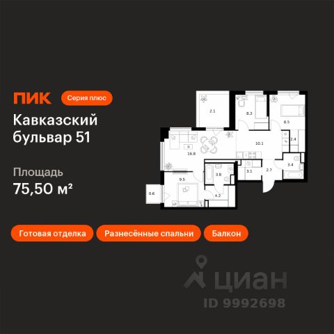 Продается трехкомнатная квартира 112 в новостройке ЖК "Русич Кантемировский" по адресу Москва, ЮАО, Царицыно, Кавказский бульвар, вл. 51/2, корп. 1. Общая площадь квартиры - 64.00 кв. м., этаж 13 из 32, секция 1. Тип проекта, по которому построен дом - монолит, компания-застройщик - Концерн "Русич". Стоимость квартиры - Р. Срок сдачи - 3 квартал 2026. Более подробная информация по телефону. Современный жилой комплекс класса бизнес-лайт "РУСИЧ Кантемировский" удачно расположен в обжитом районе Царицыно всего в 15 минутах пешком до двух станций метро. Удобное расположение рядом с трассой ЮВХ и Варшавским шоссе позволяет добраться до МКАД всего за 17 минут, а развитая инфраструктура района вместе с комплексным подходом к наполнению жилого квартала делает это место идеальным для жизни. Проект включает в себя шесть элегантных корпусов, высота которых варьируется от 17 до 32 этажей. Каждый фасад - это результат авторской архитектурной мысли, а дизайнерские лобби встречают вас атмосферой уюта и стиля. Премиальные отделочные материалы и передовые инженерные решения подчеркивают высокое качество жизни в этом комплексе. Концепция "двор без машин" создает безопасную и спокойную атмосферу: внутренние пространства огорожены и оснащены видеонаблюдением, а для автолюбителей предусмотрен современный паркинг на 291 машино-место. Дворы комплекса обещают стать настоящим оазисом: здесь появятся живописные прогулочные аллеи, уютные зоны для пикников и разнообразные спортивные и детские площадки. Центральная площадь с фонтаном, перголами и цветочными композициями станет излюбленным местом для встреч и отдыха. Еще одним значительным преимуществом является собственная школа на 900 мест и два детских сада, вмещающие 400 малышей. Вам не придется тратить много времени на покупки - рядом уже работают супермаркеты, рестораны и спортивные клубы, предлагая все необходимое для комфортной жизни. Жилой комплекс "РУСИЧ Кантемировский" гармонично сочетает в себе преимущества городской жизни и природную тишину. Всего в нескольких шагах от вашего нового дома раскинулся живописный заповедник "Царицыно", а также парки "Сосенки" и "Аршиновский", где можно насладиться свежим воздухом и спокойствием природы.