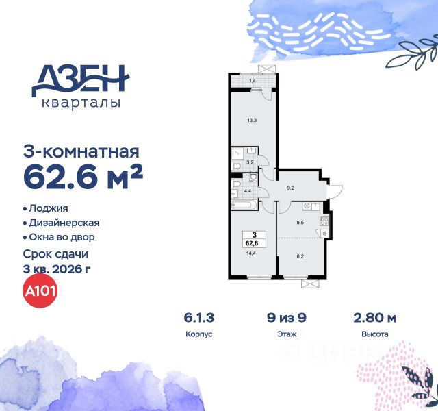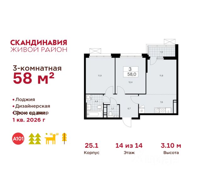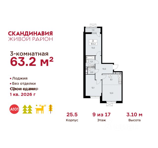 Продается 3-комн. квартира, без отделки в ЖК "Новые Ватутинки. Квартал у реки". Общая площадь: 67.8 кв.м., жилая: 41.0 кв.м., площадь кухни: 6.6 кв.м. Этаж: 7. Район расположен всего в 14 километрах от МКАД по Калужскому шоссе, в центральной части Новой Москвы. Добраться сюда можно на автобусах и маршрутках от станций метро "Ольховая", "Теплый Стан" и "Бульвар Адмирала Ушакова". Время в пути от "Теплого Стана" и "Ольховой" занимает в среднем до 20 минут, даже в часы пик. В 2025 году рядом начнется строительство новой станции метро "Десна" (Троицкая линия), которая будет находиться в пешей доступности. Благодаря удачному расположению и развитой инфраструктуре Новые Ватутинки становятся одним из культурных и образовательных центров Новой Москвы. Строительство нового микрорайона началось с трех жилых корпусов, оснащенных подземными паркингами, индивидуальными кладовыми и коммерческими помещениями на первых этажах. Заречный имеет два удобных выезда на Калужское шоссе, что обеспечивает свободный проезд без заторов. В будущем жители также смогут пользоваться станцией метро "Десна", выбрав общественный транспорт. В районе предусмотрено строительство двух образовательных комплексов с детскими садами и школами, поликлиники и торгового центра Сквозь весь микрорайон — от будущей станции метро до набережной и парка "Андерсен" — протянется пешеходный бульвар длиной 1,5 км с уютными скверами, мини-площадями и садами. Архитектурная концепция предусматривает постепенное снижение этажности ближе к бульвару, создавая приятную для жизни и прогулок городскую среду. Принцип "город в гармонии с природой" реализован через дворы без машин и безбарьерное пространство на всей территории. Внутренние дворы будут предназначены для тихого отдыха и детских игр, а активные зоны разместятся на крупных плейхабах и в общественных пространствах. "Андерсен" станет центром активного досуга: здесь запланированы вело- и пешеходные маршруты, спортивные площадки, зоны для индивидуальных тренировок на свежем воздухе, а также места для рыбалки, сапбординга и тюбинга. Квартирный фонд отличается разнообразием планировок и продуманной эргономикой: просторные квартиры, большие лоджии, по две ванные комнаты. Свободные планировки позволят легко зонировать пространство под личные нужды — создать уютную спальню, рабочее место или гостиную. В цокольном этаже предусмотрены кладовые для хранения сезонных и крупных вещей, а также подземный паркинг с индивидуальными и семейными машино-местами. Спуститься к автомобилю можно прямо из квартиры — на лифте. Проект включает систему видеодомофонии: жители смогут получать уведомления о визитах гостей в режиме онлайн, открывать входную дверь удалённо, сохранять снимки с панели вызова, а также при желании — подключить наблюдение за камерами в лифтах через мобильное приложение. Выдача ключей в 2027г.