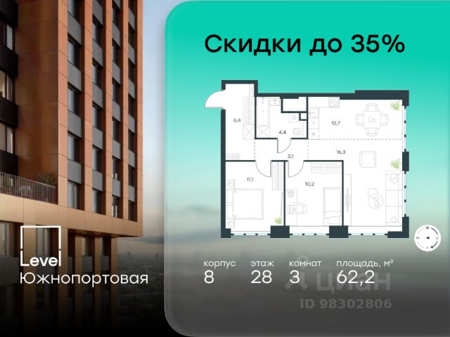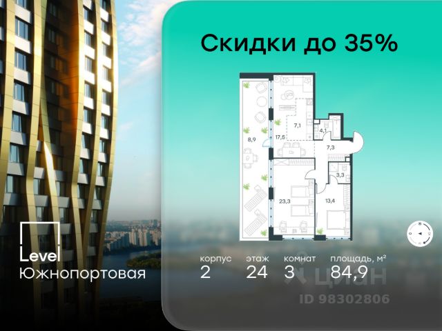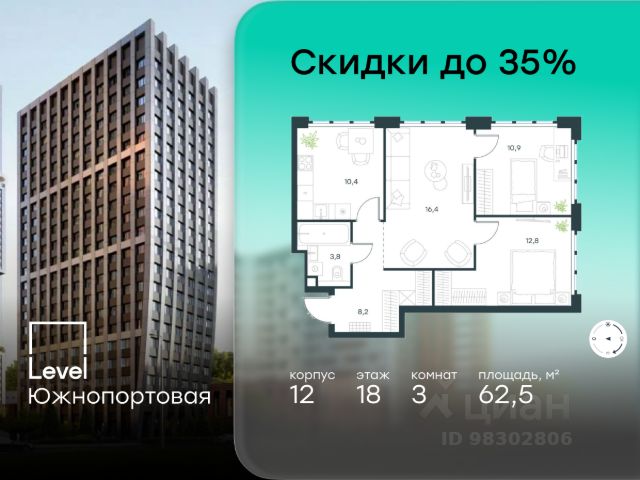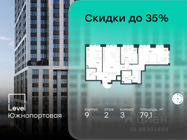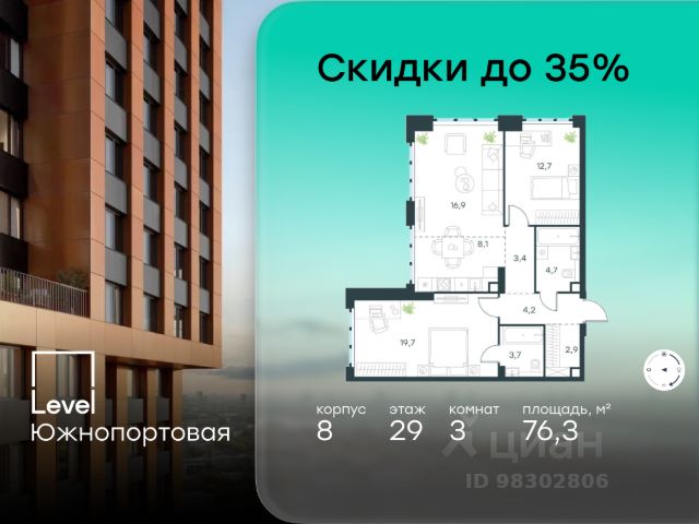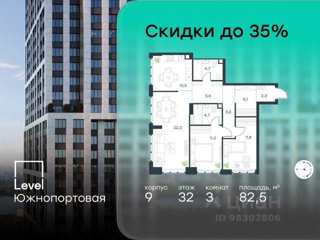 Цена указана с учётом скидки при 100%-й оплате, несубсидированной ипотеке, рассрочке (кроме программы "Рассрочка 0%"). В северной части района Печатники продается 3-комнатная квартира площадью 86.00 кв.м без отделки. Квартира расположена на 2 этаже 49-этажного корпуса 8 в жилом комплексе комфорт-класса Level Южнопортовая (компания Level Group/Левел групп). Отличная транспортная доступность: - 10 мин. пешком до станции метро "Кожуховская"; - 20 мин. пешком до станции МЦК "Дубровка"; - 3 мин. на авто до ТТК; - 13 мин. на авто до Садового кольца; - 15 мин. на авто до Бульварного кольца. Продуманный архитектурный проект: - авторская архитектура от бюро СПИЧ; - уникальные виды на реку, парки и достопримечательности города; - высота потолков в квартирах до 6 м; - окна высотой до 1,87 м с высоким коэффициентом сопротивления теплоотдаче. Расположение: Level Южнопортовая строится в северной части района Печатники - самой приближенной к центру. Здесь будет сформирован новый район "Южный порт", где построят крупный жилой и общественно-деловой центр, аналогичный Москва-Сити. В течение 10-12 лет в этом месте появятся не только жилые дома, но и развитая инфраструктура для жизни и работы. А еще совсем рядом находится набережная Москвы-реки, где планируется построить причалы для речных трамвайчиков и канатную дорогу. Уже сейчас вокруг жилого комплекса работают десятки магазинов и торговых центров, рядом расположено 6 парков, среди которых музей-заповедник "Коломенское". В 10 минутах пешком - 2 муниципальных и 2 частных детских сада, 7 общеобразовательных школ. Внутренняя инфраструктура: Для отдыха жителей в каждом корпусе предусмотрено лобби, оснащенное местами для отдыха, гостевыми санузлами и лапомойками, а в отдельных корпусах - камином. За счёт больших окон и высоких потолков пространства будут наполнены воздухом и светом. На первых этажах жилого комплекса откроются магазины, салоны красоты, фитнес-центр. Для детей строятся собственные детский сад и школа. Благоустройство: Внутренний двор комплекса разработан совместно с бюро GAFA. Основная идея - создать аналог Центрального парка в Нью-Йорке, гармонично сочетая высотные здания и большое изолированное парковое пространство. Вся площадь двора-парка будет огорожена и составит более 2 га, из которых 45% - озеленение. Одним из самых важных ландшафтных элементов здесь станет небольшая речка, наполняющаяся во время дождя. Вокруг неё появится сеть из островов, внутри которых расположатся тематические зоны спорта и отдыха. Технологии и инженерия: - автоматическая передача в управляющую компанию показаний квартирных счётчиков; - телефонная связь, телевидение и интернет на базе оптической мультисервисной сети; - гостевой Wi-Fi в лобби и на территории двора; - единый ключ доступа для входа на территорию комплекса. Продается 3-комнатная квартира в новостройке рядом с метро Кожуховская.