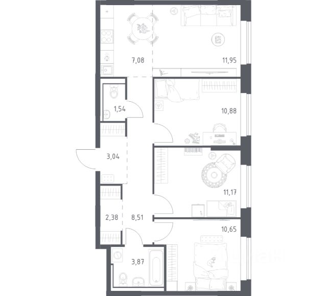 Квартира с кухней-гостиной и тремя спальнями в Квартале Герцена. Особенности планировки: балкон, окна на две стороны, предчистовая отделка, французский балкон. Квартиру можно купить онлайн. В квартире выполнена отделка "под чистовую". Установлены окна с двойным стеклопакетом, радиаторы с терморегуляторами. На полу цементно-песчаная стяжка. В квартиры заведены кабели для интернета и ТВ. Входная сейф-дверь не требует замены. Организован поквартирный учёт энергоресурсов (водоснабжение, отопление, электричество). Квартал "Герцена" расположен в Бирюлёве Восточном — районе на юге Москвы. Дорога до ТТК займет всего полчаса на автомобиле, до станции метро и ж/д станции "Царицыно" — 13 минут, а до автовокзала "Южные ворота" — 20 минут. До автобусных остановок можно дойти пешком. В 2027-2028 году откроется новая станция метро "Лебедянская", дорога до неё займет всего 18 минут. Общая площадь "Квартала Герцена" составляет 27,3 га. Дома состоят из разноуровневых секций высотой от 6 до 55 этажей с видовыми террасами и балконами. На территории квартала будет построена поликлиника, детский сад на 350 мест и воспитательно-образовательный комплекс на 1075 мест, а также рестораны, клиники, магазины и салоны красоты. Объявление от застройщика. Ипотека, материнский капитал. Обмен — один из способов покупки. Обмен подойдёт, если вы хотите быстро поменять старую квартиру на новую. Получить ипотеку или рассрочку, а также обменять квартиру можно онлайн. Запишитесь на онлайн-презентацию по телефону или на сайте. квартиры в нашей базе: ГРЦ01.2-Ж4.14.1. Продается 3-комнатная квартира в новостройке рядом с метро Красногвардейская.