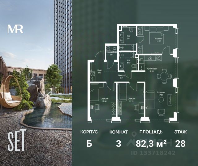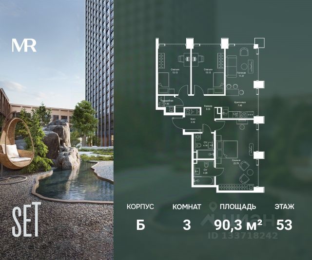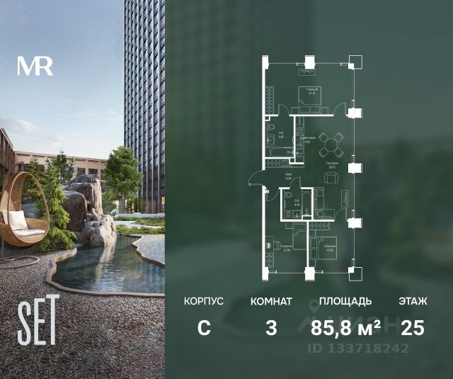 О квартире Продаётся 3-комнатная квартира общей площадью 85.61 кв.м. без отделки. Квартира расположена на 7 этаже корпуса 4.2 в жилом комплексе бизнес-класса "Среда на Кутузовском" в пешей доступности от метро "Кунцевская". О жилом комплексе Комплекс предназначен для людей, которые ставят в приоритет свой комфорт, умеют прислушиваться к себе и понимают, что нужно для внутренней гармонии. Это проект для тех, кто ценит свое время и использует его правильно. Для тех, кто умеет радоваться тому, что есть. "Среда на Кутузовском" — личное место силы и гармонии в двух шагах от центра города. Инфраструктура Жилой комплекс строится в престижном и зеленом Кунцево. Здесь расположены различные торговые центры, престижные учебные заведения (МГУ, РЭУ им. Плеханова, Финансовый университет при Правительстве РФ, РУДН) медицинские клиники. Представлены широкие возможности для поклонников разных видов спорта: от бега в ближайших парках и велозаездов до гребли, баскетбола, футбола, хоккея, фигурного катания и катания на лыжах. На каждый день подойдет World Class с открытым бассейном — он находится всего в 1 минуте от дома. Выбор мест для прогулок также разнообразен: Суворовский парк, лесной массив Крылатских холмов, Москворецкий парк и природный заказник "Долина реки Сетунь". 10 мин пешком: -м. Кунцевская -вся необходимая инфраструктура До 15 мин на авто: -Северо-Западная хорда -Кутузовский проспект -Рублевское шоссе -МКАД -Можайское шоссе Особенности Проект сочетает в себе ритмичность и динамичность, благодаря своей архитектуре, при он этом окружен зеленью и парками. "Среда на Кутузовском" погружает в активный и разнообразный образ жизни, дает вариативные возможности досуга и вдохновляет на новые свершения. —Зоны отдыха у воды —Принцип многослойности в архитектуре —Зона барбекю —Пентхаусы —Умный паркинг —Гайдбук по управлению умным домом —Окна в пол на всех этажах Продается 3-комнатная квартира в новостройке рядом с метро Кунцевская.
