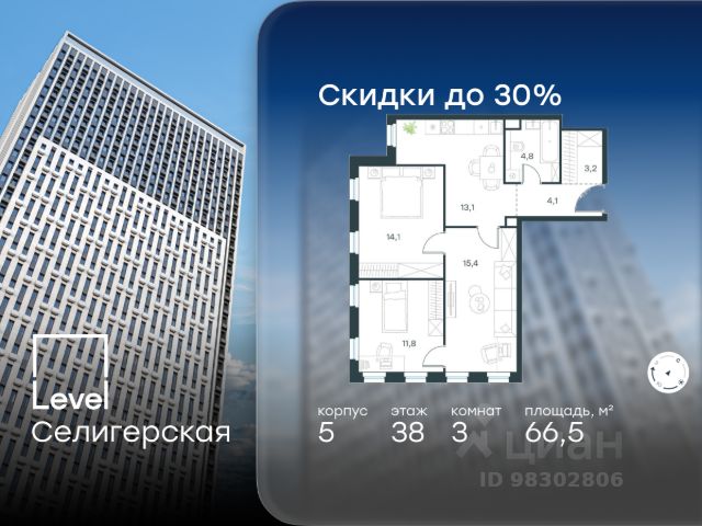 Прямая продажа от застройщика. Продаётся 3-комнатная квартира общей площадью 92.34 м² без отделки в ЖК "Селигер Сити" на 16-м этаже 21 этажного дома. Селигер Сити - это уютное пространство, где предусмотрена застройка разной этажности, чтобы каждый покупатель мог выбрать то, что ему по душе: невысокие дома или небоскребы, с верхних этажей которых будут открываться отличные виды на город. Преимущества проекта: Первые три очереди сданы. - 2 минуты пешком от метро "Селигерская" - Архитектурное решение от голландского бюро MLA + - 8 корпусов разной этажности от 8 до 45 этажей - Одна из самых больших придомовых территорий в Москве - размером с 4 футбольных поля - Огороженная охраняемая территория, круглосуточное видеонаблюдение - Европейский подход к благоустройству от бюро WOWHaus: детские площадки для разных возрастов, спортивные площадки, площадки воркаута, дорожки для бега и пеших прогулок, скейтпарк, хоккейная площадка, площадка для выгула собак - Искусственный пруд на территории комплекса с благоустроенной набережной и мостом - Продуманная концепция инфраструктуры: уютные кафе и рестораны, супермаркет, магазин фермерских продуктов, бытовые службы, салон красоты, детские сады - Панорамные окна высотой до 2,5 м, в корпусах 3 очереди витражное остекление высотой до 4,2 м - Широкий выбор квартир - от компактных студий до просторных квартир с тремя спальнями и пентхаусов - Четыре вида дизайнерской отделки квартир от бюро Вlank Architects - Возможность купить квартиру с предчистовой отделкой white box - "Умный дом" на платформе Ujin. Система безопасности, вход на территорию и в подъезд по биометрии или BLE-метке, въезд в паркинг по считывателю номера, контроль климата. Все для комфортной жизни! - Лобби по индивидуальному дизайн проекту от европейского бюро Вlank Architects: лаунж-зоны, ресепшен, колясочная, помещение для мытья лап животным после прогулки - Подземный паркинг на 2189 машино-мест по индивидуальному дизайну, с зарядными устройствами для электромобилей, постами для подкачки шин и келлерами - Надежный девелопер с опытом премиальных проектов MR Расположение комплекса: - 2 минуты от станции метро "Селигерская" - 7 минут на машине до станции метро "Окружная" - Предусмотрен удобный выезд в сторону ТТК (всего 9 км или 15 минут без пробок) - МКАД в 10 минутах на машине Компания MR предлагает своим клиентам специальные условия приобретения квартир в рамках программ ипотечного кредитования от банков-партнеров.