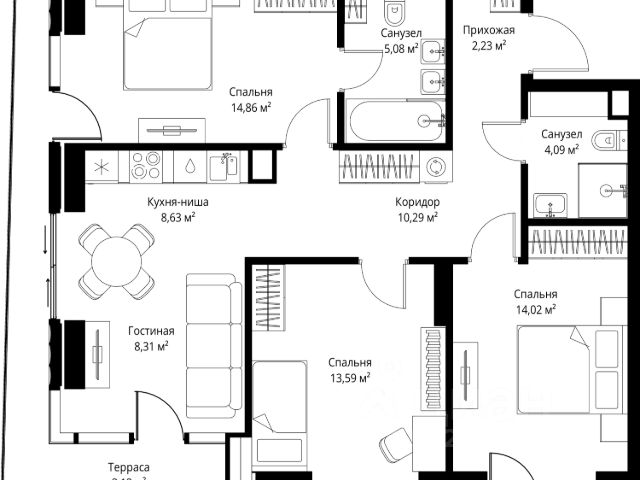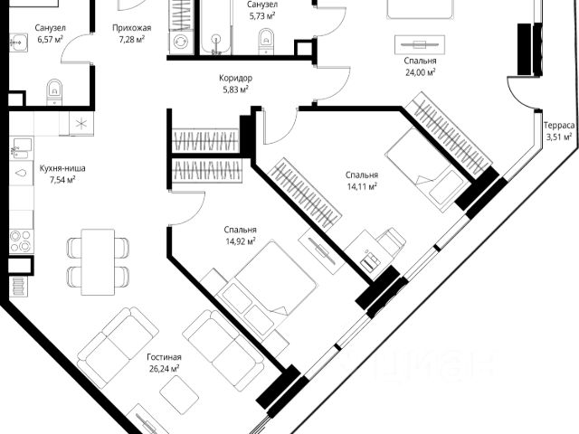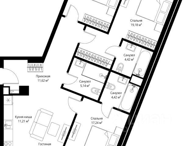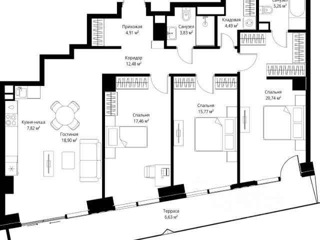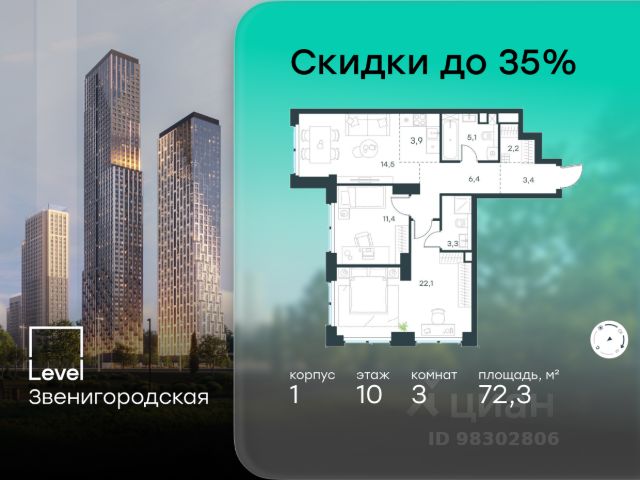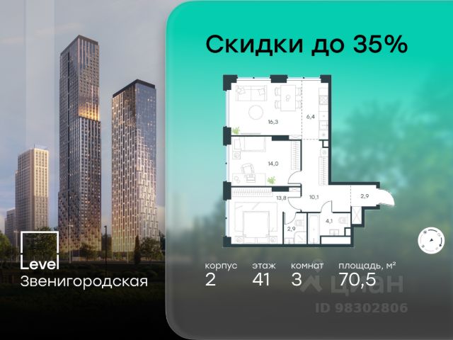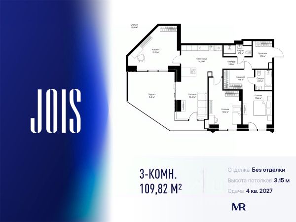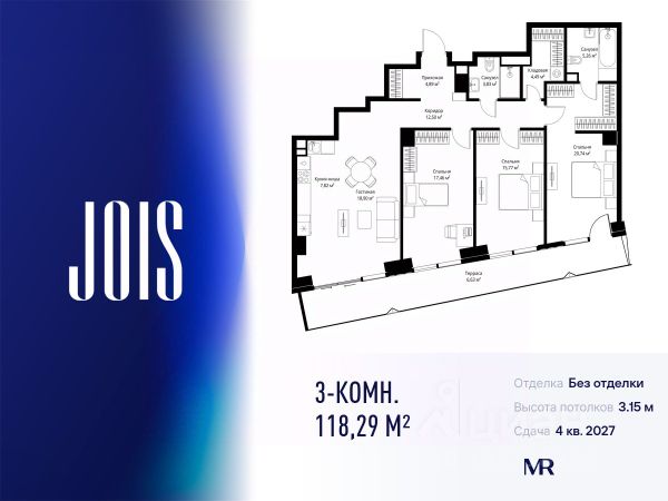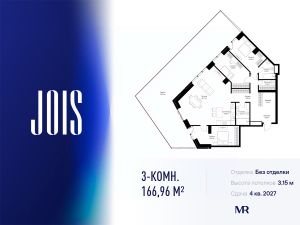 10 минут от Москва-Сити В продаже квартира площадью 174.74 м² без отделки на 13 этаже 55 этажного дома. Квартира расположена в корпусе Anna. JOIS это премиальный жилой комплекс от девелопера MR в районе Хорошёво-Мнёвники. Он включает несколько эффектных небоскрёбов высотой 47-56 этажей, эксклюзивные форматы квартир с панорамным остеклением, подземный двухуровневый паркинг на 239 м/м, собственную приватную инфраструктуру, закрытый ландшафтный парк 2,3 Га с функциональным зонированием и охраняемой территорией. Над проектом работали лучшие команды международных агентств с многолетним опытом: Genpro, S&P, iLight International и другие. Расположение Пешком: - 5 мин. ст. МЦК "Хорошёво"; - 15 мин. ст. м. "Народное ополчение"; - 10 мин. ст. метро "Звенигородская" с 2027 года; - 20 мин. причал "Карамышевский". На автомобиле: - 3 мин. до Звенигородского шоссе; - 5 мин. до ТТК: - 8 мин. до Серебряного бора и Строгинского затона - 10 мин. до ММДЦ "Москва-Сити"; - 40 мин. до аэропорта "Шереметьево"; Благоустройство - собственный ландшафтный парк 2,3 Га; - парк скульптур от Cosmoscow; - консьерж-сервис 24/7; - сервисный лифт и вход; - игровые и спортивные площадки; - коворкинг с библиотекой; - лаунж-зона с камином; - игровые комнаты для детей и клуб для подростков с оборудованием для видеоигр; - спортивная студия для индивидуальных тренировок; - гостиная с мини-кухней; - зоны для выгула собак; - подогрев пешеходных дорожек в зимний период; - автополив зелёных насаждений; - премиальные рестораны, кафе, химчистки, аптеки и супермаркеты. Окружение - 4 парка: Покровское-Стрешнево, Филёвский парк, Серебряный бор и Берёзовая роща; - 15 общеобразовательных заведений, в том числе две школы из самых лучших в Москве: государственная школа "Интеграл" и частная "Хорошкола"; - спортивное сооружение "ВЭБ Арена", домашний стадион ФК ЦСКА; - крупнейший в Европе торгово-развлекательный центр "Авиапарк".