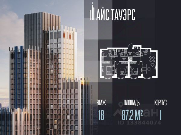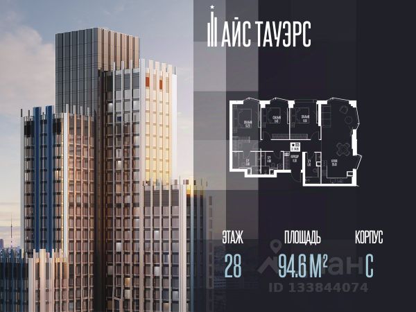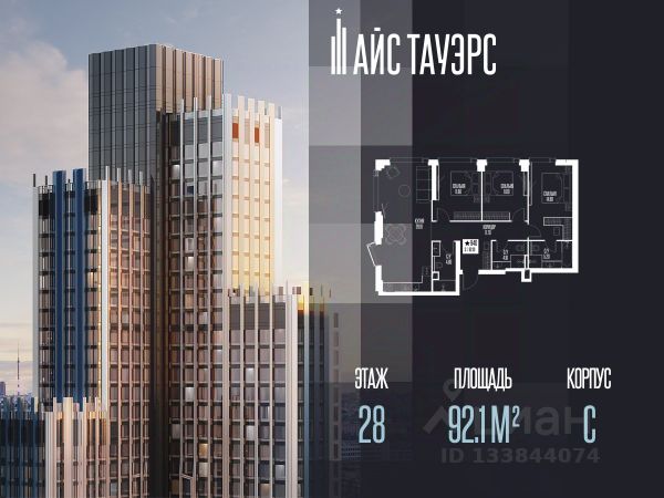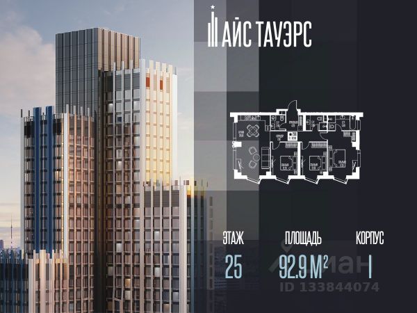 3-комн. квартира в ЖК "Ever" на 4 этаже в 34 этажном здании Корпус 5. Общая площадь: 60.1 кв.м., жилая: 41.9 кв.м. Высота потолков 3.00 м.
