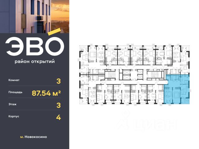 Продается трекомнатная квартира 87.54 кв.м. в жилом комплексе ЭВО на 25 этаже по адресу: Московская область, г. Реутов, ул. Комсомольская. Скидка 10% при полной оплате!* ЭВО - проект комфорт-класса от девелопера Dogma. Каждый житель сможет открыть для себя максимум возможностей. Совершенствоваться во всех направлениях: физическом, эмоциональном и материальном. В ЭВО можно открыть для себя новые виды спорта, найти единомышленников по хобби, партнеров по бизнесу, развивать в детях новые грани, наслаждаться природой и лаконичной архитектурой. Более 6 га благоустройства в первой очереди! - Зеленый двор без машин, кленовая аллея для прогулок. - Нейродинамические площадки для детей разных возрастов. - Зона уличных тренажеров, столы для пинг-понга, места для занятия йогой. велодорожки и дорожки для скандинавской ходьбы. - Детский сад на 180 мест и школа на 750 мест. - Зона книгообмена - Лобби с зоной ожидания, колясочной и лапомойкой. - Магазины и кафе на первых этажах. БЕЗОПАСНОСТЬ - Закрытая территория. - Круглосуточное видеонаблюдение. - Контроль доступа. РАСПОЛОЖЕНИЕ Пешком - 7 минут до станции Реутов. - 20 минут до метро Новокосино. На машине - 4 минуты до МКАД. - 6 минут до шоссе Энтузиастов. - 9 минут до Носовихинское шоссе. - 13 минут до МСД (Московский скоростной диаметр). СОЦИАЛЬНАЯ ИНФРАСТРУКТУРА В первой очереди предусмотрено строительство детского сада на 180 мест и школы на 750 учащихся. В 10 минутах ходьбы от ЭВО находится детский технопарк "Изобретариум", в котором более 60 научных секции: от IT до промышленного дизайна. Для творческих ребят рядом есть художественная и музыкальные школы, хоровая студия. ОКРУЖЕНИЕ - Реутовский центральный парк, Александровский сквер, Фабричный пруд. - ТЦ "Экватор", ТК "Шоколад". - Спортивный комплекс "Старт", Ледовый комплекс "Реутов Арена". - Музей-усадьба "Кусково". *Подробности уточняйте по телефону.