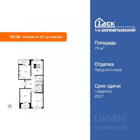 Продается трехкомнатная квартирав жилом комплексе комфорт класса "Химки Тайм" площадью 67.47 кв.м на 18 этаже 20 этажного дома. Квартира с полной отделкой, окна выходят во двор и на улицу. Прекрасный выбор для первой квартиры или инвестиций. Комфортные квартиры по комфортной цене! • Скидки на квартиры до 17% (стоимость квартиры в карточке указана с учетом скидки). • Семейная ипотека без дополнительных комиссий • IT ипотека без дополнительных комиссий • Квартиры "под ключ", сдаются с чистовой отделкой, в светлых и темных тонах на ваш выбор. • Точечная застройка с готовым ремонтом: выбирайте дом, где слышно птиц, а не стройку. Живите ДОМА, а не на стройплощадке. • Бесплатный наземный паркинг грамотное планирование потоков машин и пешеходов позволяют сделать дом удобным для всех. Не нужно переплачивать за подземный гараж. • Прекрасный выбор для первой квартиры или инвестиций. В 20252027 недалеко будет запущен Индустриальный парк "Молжаниново" технологичный объект, который станет еще одним катализатором развития района, предоставит рабочие места высококвалифицированным специалистам и подстегнёт спрос на покупку и аренду квартир. Успейте вложиться по выгодной цене. До центра Москвы на учебу, работу и по любому поводу — это быстро! • 5 мин пешком до скоростной линии МЦД-3 "Молжаниново". • От 30 мин на автобусе или маршрутке до ст.м. "Сходненская", "Речной вокзал". Остановка общественного транспорта "Филино" около ЖК. • На автомобиле удобный выезд на Ленинградское шоссе: до центра Москвы — 40 минут, до международного аэропорта Шереметьево — 20 минут. В состав чистовой отделки входит всё, что нужно для комфорта. Вкладывайте в себя и в детей, а не в ремонт! • Выравнивание полов, стен и потолков • Покрытие полов ламинатом • Поклейка обоев • Монтаж натяжных потолков с установкой светильников • Установка межкомнатных дверей • Установка радиаторов отопления • Выкладывание плиточного "фартука" на кухне • Установка водопроводных и канализационных труб в "мокрой зоне" на кухне • Укладывание плитки в ванной комнате • Установка сантехники • Установка счетчиков • Разводка электросети • Монтаж розеток, выключателей Архитектура на многие десятилетия! • Дома строятся по монолитной технологии с вентилируемыми фасадами. В квартирах будет комфортный микроклимат в любой сезон, а корпуса сохранят достойный внешний вид в течение долгого времени. • В каждом корпусе один подъезд и 3 лифта это не человейник. • В каждом подъезде есть отдельная комната для хранения спортивного оборудования. Инфраструктура на территории качественный дом с понятной "начинкой". • На первых этажах расположатся магазины, салоны красоты и кафе • Внутри ЖК будет муниципальный детский сад • 2 спортивные площадки • 2 площадки для отдыха взрослого населения • 4 детские игровые площадки Собственный паркинг ваша машина около вашего дома. • В ЖК своя бесплатная наземная автостоянка на 210 машиномест Окружение выбирайте ЖК