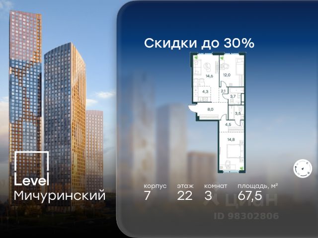 Номер лота: 152 Продается Квартира в ЖК "ОМ" по адресу Москва, Мичуринский проспект, д. 72а Общая площадь квартиры - 102,90 кв. м., этаж 22. Стоимость квартиры - 54 116 572 р. "ОМ" - единственный клубный дом на Юго-Западе Москвы. Современный дом бизнес-класса в окружении парков. Светлые квартиры с потолками от 3 метров и панорамным остеклением. Безопасная территория под круглосуточной охраной и видеонаблюдением. Комфортное проживание с подземным паркингом и объектами street retail на первом этаже. Расположение 2 минуты пешком до Очаковского парка 10 минут пешком до парка Олимпийской деревни 10 минут до станции метро "Мичуринский проспект" 12 минут до станции метро "Озёрная" 15 минут до центра Москвы Архитектура В основе архитектурного облика ЖК лежит контраст между двумя башнями, который достигается за счет характерных особенностей обоих объемов и применения различных материалов отделки. Фасады жилого комплекса облицованы белыми полуматовыми керамическими панелями, промежутки между окнами зашиты темными стальными листами. На фасадах двух корпусов считывается много акцентных деталей в виде горизонтальных фасок между этажами. "ОМ" - жилой комплекс из двух башен, высотностью 23 этажа. Архитектурная концепция проекта - современность и экологичность. Это выражается в зелёном дворе и элементах фасада, выполненных из природных материалов - камня и гранита. Ключевые преимущества: - бизнес-класс; - приватность (клубный дом на 236 квартир); - безопасность (охрана и видеонаблюдение); - комфорт (двухуровневый подземный паркинг на 180 машиномест); - инфраструктура (street retail на первом этаже); - светлые квартиры (панорамное остекление, потолки выше 3 метров); - экологичность (дом окружен многочисленными парками с водоёмами); Единение с природой Дом расположен в экологичном районе Москвы. Здесь нет промышленных предприятий, район окружён зелёными парками и прудами. В 2 минутах ходьбы от ЖК "ОМ" находится Очаковский парк: на его территории есть большой пруд, детские и спортивные площадки, церковь и смотровая площадка. Через дорогу в 10 минутах находится парк Олимпийской деревни, где можно взять напрокат велосипеды, самокаты, ролики и устроить спортивную прогулку. Также есть оборудованные детские площадки, канатный парк, пруды с фонтанами и амфитеатр со сценой. Наука и культура рядом В округе сосредоточены известные НИИ и вузы, среди которых МГУ, МГИМО, РАНХиГС, МПГУ, Московский технологический университет, Военная академия Генштаба. Для любителей культурного досуга в пешей доступности находится концертный комплекс Московской государственной академической филармонии - Филармония-2. Квартиры в комплексе доступны по 100% оплате и в ипотеку.