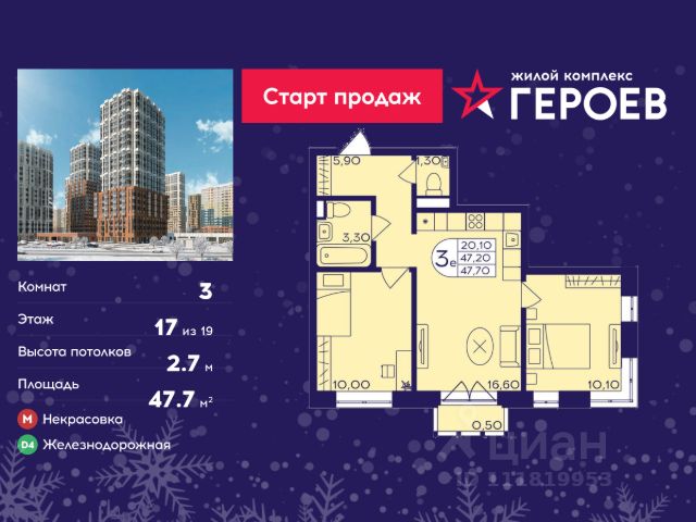 Продаётся 3-комнатная квартира в формате евро 49.40 кв. м. в жилом комплексе "Героев" в Балашихе, Железнодорожный. Квартира расположена на 2 этаже 611 корпуса. В наличии квартиры с отделкой. Всего 40 минут до центра Москвы. При покупке квартиры в сданном доме ключи выдаются сразу! Жилой квартал "Героев" - это уютный проект для семей с детьми. В квартале созданы все условия для досуга всех возрастов: игровые и спортивные площадки, места для отдыха и прогулочные зоны. За 15 минут можно дойти от дома до Ольгинского лесопарка, популярного места для отдыха на свежем воздухе. На территории жилого комплекса уже открыт детский сад на 250 мест и началось строительство еще одного - для 220 малышей, а также школы для 1320 учеников. Рядом работают магазины, кафе, супермаркеты, пункты выдачи. Преимущества: • В уютных светлых квартирах с просторными кухнями-гостиными удобно встречать гостей и проводить время наедине друг с другом. • Благодаря увеличенному остеклению в комнатах много света. • Квартиры продаются с отделкой, можно заселяться сразу после получения ключей.
