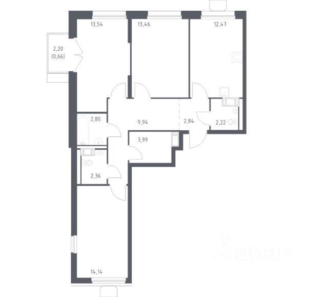 • 1-4 комнатные квартиры площадью от 60,1 м² до 84,2 м² м².