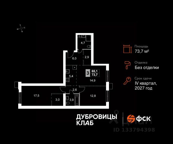 Прямая продажа от застройщика! Загородный жилой комплекс комфорт-класса. Продаётся 3-к квартира 204 общей площадью 69.1 кв.м на 2-м этаже 4 этажного дома. Без отделки. Расположение комплекса: "Дубровицы Клаб" — это современный малоэтажный комплекс комфорт-класса, который сочетает в себе атмосферу уюта загородной жизни и все преимущества развитой городской инфраструктуры. В проекте представлено два формата жилья - комфортные таунхаусы и эргономичные квартиры. Территория "Дубровицы Клаб" приватные зелёные дворы без автомобилей, школа, детский сад и спорткомплекс с бассейном. Транспортная доступность: - 20 минут на машине до станции МЦД "Подольск" - 50 минут на машине до МКАД - 50 минут на машине до ст.метро Улица Скобелевская Внутренняя инфраструктура: "Дубровицы Клаб" объединяет динамику городской жизни и спокойствие природы, создавая пространство, где работа и отдых, движение и умиротворение сливаются в единый поток — в жизнь, наполненную балансом и вдохновением. Место силы — это философия жизни, воплощённая в благоустроенной среде загородного комплекса "Дубровицы Клаб". Здесь всё создано для восстановления энергии и гармонии: прогулочные маршруты, зоны отдыха, воркаут-площадки и природные пространства, плавно переходящие в уют жилых кварталов. Для удобства жителей на территории комплекса открыта торговая галерея, где собрано всё необходимое: супермаркет, аптека, зоомагазин, винный бутик, лавка деликатесов, пекарня, химчистка и дом быта.