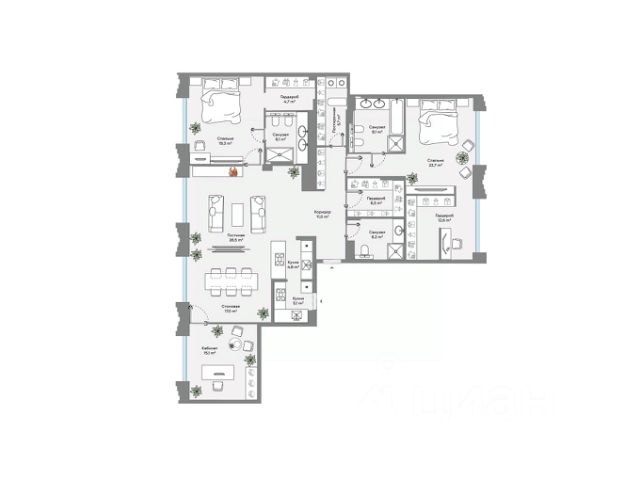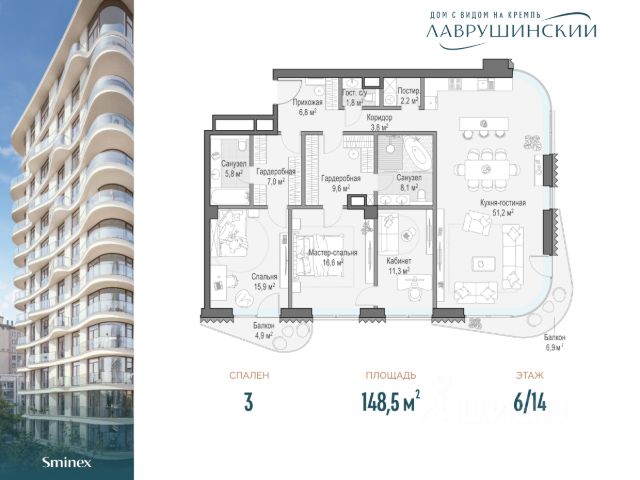 Светлая 3-комнатная двухсторонняя квартира площадью 247,8 кв. м, расположенная на 5 этаже в новом жилом квартале "Золотой-2" от Capital Group - прямо напротив Кремля. Окна шикарной кухни-гостиной, являющейся идеальным местом для воплощения буквально любых дизайнерских идей, выходят в сторону зеленого внутреннего двора проекта. Все спальни, включая master bedroom объединены с собственными ванными комнатами и гардеробными. Идеально подходит для семьи - квартира расположена в самом сердце города и, в то же время, в окружении зеленых садов, уютных скверов, окна ориентированы в сторону Болотной площади и Репинского сквера. Дом сдан в эксплуатацию - осталось получить ключи и насладиться высочайшим уровнем жизни в самом центре столицы. Квартал расположен на первой линии Москва-реки, в нескольких минутах пешком Кремль, парк Зарядье, Третьяковская галерея. Предупредительный VIP-консьерж уровня премиальных отелей 24/7 поможет с любыми повседневными задачами, решит все вопросы! Шикарные лобби украшены свежими цветочными композициями, индивидуально подобранными предметами искусства, специально для квартала созданы уникальные парфюмерные композиции - все, чтобы вдохновляться своим домом. 3-комнатная квартира в новостройке рядом с метро Полянка.