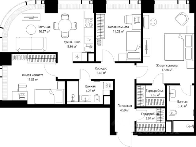 О квартире Продаётся 3-комнатная квартира общей площадью 97.61 кв.м. с отделкой white box. Квартира расположена на 13 этаже корпуса 4.1 в жилом комплексе бизнес-класса "Среда на Кутузовском" в пешей доступности от метро "Кунцевская". О жилом комплексе Комплекс предназначен для людей, которые ставят в приоритет свой комфорт, умеют прислушиваться к себе и понимают, что нужно для внутренней гармонии. Это проект для тех, кто ценит свое время и использует его правильно. Для тех, кто умеет радоваться тому, что есть. "Среда на Кутузовском" — личное место силы и гармонии в двух шагах от центра города. Инфраструктура Жилой комплекс строится в престижном и зеленом Кунцево. Здесь расположены различные торговые центры, престижные учебные заведения (МГУ, РЭУ им. Плеханова, Финансовый университет при Правительстве РФ, РУДН) медицинские клиники. Представлены широкие возможности для поклонников разных видов спорта: от бега в ближайших парках и велозаездов до гребли, баскетбола, футбола, хоккея, фигурного катания и катания на лыжах. На каждый день подойдет World Class с открытым бассейном — он находится всего в 1 минуте от дома. Выбор мест для прогулок также разнообразен: Суворовский парк, лесной массив Крылатских холмов, Москворецкий парк и природный заказник "Долина реки Сетунь". 10 мин пешком: -м. Кунцевская -вся необходимая инфраструктура До 15 мин на авто: -Северо-Западная хорда -Кутузовский проспект -Рублевское шоссе -МКАД -Можайское шоссе Особенности Проект сочетает в себе ритмичность и динамичность, благодаря своей архитектуре, при он этом окружен зеленью и парками. "Среда на Кутузовском" погружает в активный и разнообразный образ жизни, дает вариативные возможности досуга и вдохновляет на новые свершения. —Зоны отдыха у воды —Принцип многослойности в архитектуре —Зона барбекю —Пентхаусы —Умный паркинг —Гайдбук по управлению умным домом —Окна в пол на всех этажах