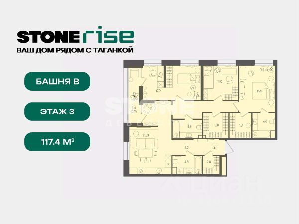 Старт продаж квартир в ЖК бизнес+ класса от девелопера STONE В продаже функциональная и светлая двуспальная квартира с кухней-гостиной и двумя спальнями для реализации любого дизайн-решения, идеально подходящая молодым парам, которые только планируют пополнение, а также небольшим семьям, где малыш уже подрастает. Квартира расположена в камерном низкоэтажном жилом комплексе бизнес+ в одной станции от кольца. STONE Rise находится в уникальной точке с быстрым доступом ко всем ключевым локациям Москвы. Жилой комплекс располагается на границе Таганского района в одной станции от Кольцевой линии метро и в 8 минутах от Садового кольца. Близость к ЦАО обеспечивает выезды на основные магистрали. В 3 минутах от комплекса располагается новый ТПУ Серп Молот, которые объединяет 2 линии метро и МЦД. - 3 мин. м. "Римская", "Площадь Ильича" - 3 мин ТПУ "Серп и Молот", МЦД-2, МЦД-4 - 2 станции на метро до ГЭС-2 и Третьяковки, до Чистых прудов и Сретенского бульвара по салатовой - 10 минут пешком до набережной Яузы и 20 минут до трех разных парков. Архитектура Архитектурный проект разработан московским бюро WALL, известным работой над премиальными жилыми и офисными зданиями. Фасады домов выполнены из бетонной плитки серого и лого м изумрудного оттенков, а также металлических кассет. Вход в комплекс осуществляется через единое гранд-лобби. Здесь будут расположены кофейня, почты с локерами, а также комфортная гостиная с мягкой мебелью. В каждом корпусе расположены лаунж-зоны с естественным освещением в зоне лифтов. Благоустройство Территория комплекса полностью закрыта для машин и случайных посетителей. В центре - прогулочная аллея с дизайнерским освещением и местами для отдыха. В комплексе также обустроена площадка для выгула собак. Маршруты движения внутри двора продуманы для удобства пеших прогулок. Инфраструктура жилого комплекса На первых этажах комплекса расположены кафе, магазины, фитнес-студия и другие сервисные объекты. Двухуровневый подземный паркинг с возможностью выбора стандартных, увеличенных или семейных мест. Для удобства жителей предусмотрены лапомойки, келлеры, места для временного хранения велосипедов и самокатов. В STONE Rise также спроектировано многоуровневое пространство для жителей: - Бизнес-гостиная и детская-игровая, многофункциональное цифровое пространство - Благоустроенная общественная терраса с панорамными видами Девелопер STONE - девелопер коммерческой и жилой недвижимости классов бизнес и премиум в Москве с 18-летним опытом. С 2022 года занимает лидирующую позицию на офисном рынке (рейтинг РБК). Сегодня в портфеле девелопера представлено 2,5 млн кв. м построенных, строящихся и проектируемых объектов, из которых более 850 тыс. кв. м находятся в стадии строительства. Компания имеет самый масштабный проектный портфель офисной недвижимости класса А на московском рынке (данные NF Group) и возглавляет топ-6 устойчивых девелоперов, согласно исследованию FResearch - Forbes. ID.22768 Купить 3-комнатную квартиру в новостройке рядом с метро Римская.