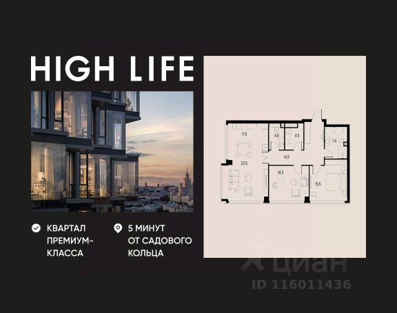 • 1-4 комнатные квартиры площадью от 57,7 м² до 164,4 м² м².