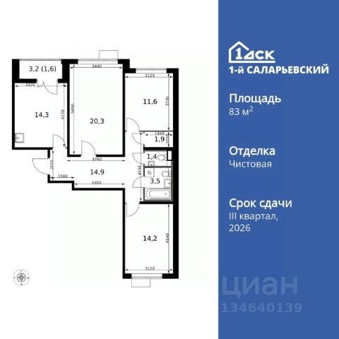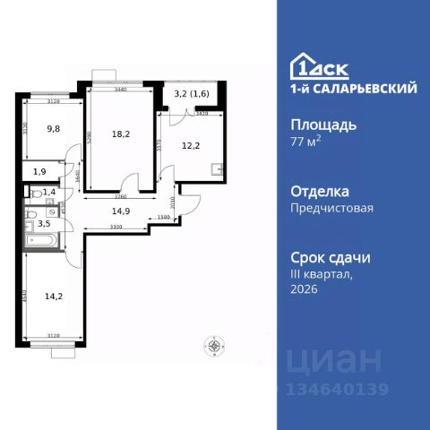 Квартира общей площадью 66,2 м2, продаётся без ремонта!