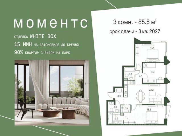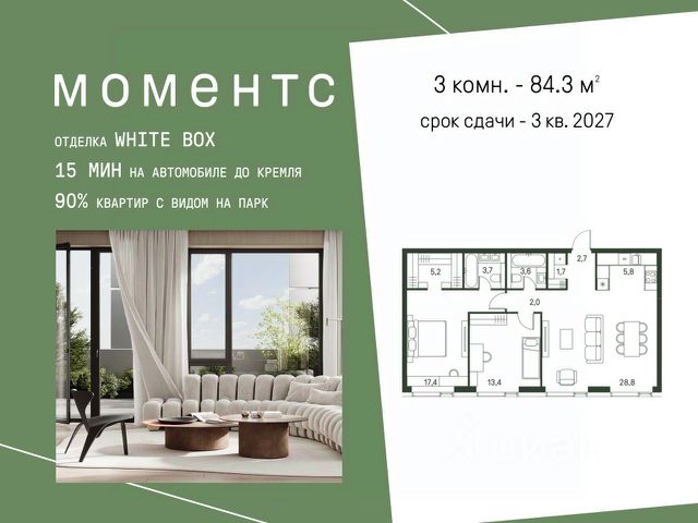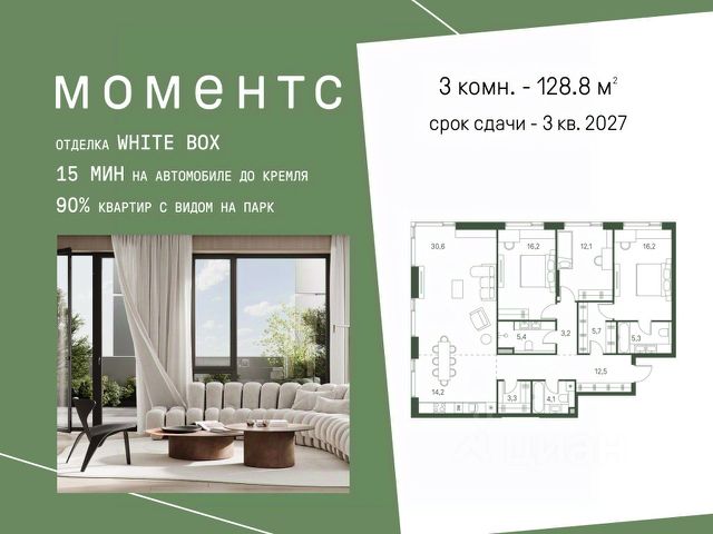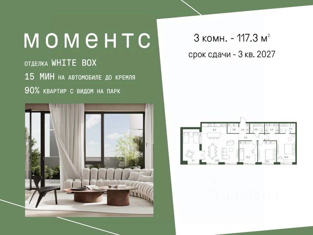 В продаже 3-комнатная квартира в готовом клубном доме бизнес-класса "Интонация". Квартира с высокими потолками с мастер-спальней, просторной кухней и постирочной. Возможна установка камина. Условия покупки: - семейная ипотека - рассрочка на 6 месяцев - Trade-in "Интонация" состоит из двух 21-этажных корпусов и приватной внутренней территории. На стилобате расположен ландшафтный сад с авторским благоустройством. В продаже финальный пул квартир бизнес-класса с мастер-спальнями, возможностью установки камина, окнами в ванных комнатах, увеличенной высотой потолков, а также просторными террасами и лоджиями. "Интонация" расположена в экологичном районе Щукино на северо-западе Москвы. Вокруг Щукинский лесопарк, Всехсвятская роща и парк "Покровское-Стрешнево". Одно из главных преимуществ дома - сочетание близости к природе и развитой инфраструктуры: - до метро "Щукинская" - 10 минут пешком - до центра - 10 минут на автомобиле Рядом детские сады и школы, включая знаменитую Курчатовскую. Недалеко расположены корпуса Финансового университета и других ведущих вузов. В пешей доступности - поликлиники, супермаркеты, фитнес-центры и спортивные секции. Собственная инфраструктура "Интонации" - ресторан итальянской кухни, студия фитнеса и пилатеса, супермаркеты, один из которых круглосуточный, салон красоты, барбершоп и химчистка. Приватная территория "Интонации" разделена на две тематические зоны: внутренний двор с детскими и спортивными площадками и ландшафтный сад на террасе. Главным акцентом стал парящий водоем с подвижной гладью. Двухуровневый паркинг рассчитан на 186 автомобилей и 27 гостевых мест. Есть возможность зарядки электромобилей, удобный подъезд для грузового транспорта, келлеры для хранения личных вещей и помещение для велосипедов.