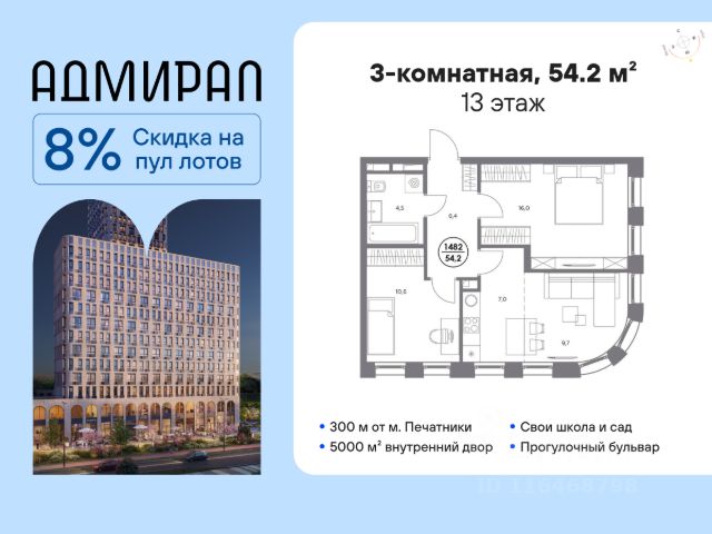 В динамично развивающемся районе Москвы, всего в 300 метрах от метро и в пешей близости от нового городского порта с протяженной набережной 13 км, свободной от автомобилей, продается 3-комнатная квартира площадью 60.00 м². без отделки. Квартира находится в корпусе жилого комплекса бизнес-класса "Адмирал", расположенного по адресу г. Москва, ул. Шоссейная, 4Д. (Застройщик - "Галс Девелопмент"). Новый амбициозный проект "Адмирал" станет частью одного из самых перспективных районов будущего - "Сити-2". В пешей доступности от современных башен Вас ждут живописные Люблинские пруды, 2 усадьбы с уникальной историей и уютный парк "Печатники" у Перервинского плёса. Район имеет отличную транспортную доступность: • 300 метров до станции метро "Печатники"; • Удобная пересадка на БКЛ и станцию МЦД-2; • 10 минут на машине до ТТК; • 15 минут до Садового кольца. Архитектура корпусов отличается динамичностью облика благодаря переменной этажности: высокие башни сочетаются с домами средней этажности. Изящным украшением становятся арочные витражи. Интеллигентный и современный стиль "Адмирала" продолжается в гранд-лобби: пастельные оттенки интерьера и фактурные элементы декора создают атмосферу безмятежного отдыха, особое ощущение простора дарят высокие потолки до 4 м и витражные окна. В домах предусмотрено от трех до шести скоростных лифтов, каждый из них спускается на любой этаж подземного паркинга и обладает удобными сенсорными панелями управления и низким уровнем шума. Благоустроенный двор площадью 5000 кв.м. украсят десятки видов гипоаллергенных растений. Здесь можно совершить приятный променад, по пути заглядывая за свежезаваренным кофе, уединиться за ноутбуком в комфортном коворкинге, занять ребенка играми в двухъярусном плейхабе или помедитировать на специальной площадке для йоги. Мягкий свет декоративных фонарей подчеркнет живописность местности, а чувство безопасности гарантируют круглосуточные системы видеонаблюдения. Дополнительные преимущества: • Высокие потолки от 2,9 до 3,25 м; • Бизнес-центр, школа и детский сад прямо на территории дома; • Подземный двухуровневый паркинг на 1955 машино-мест; • Кладовые помещения в тёплом контуре на 2м этаже; • Стрит-ритейл на первых этажах. Продается 3-комнатная квартира в новостройке рядом с метро Текстильщики.