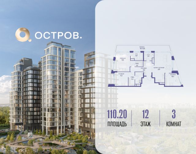 Скидка до 12% действует до 25.12.2025 г. при 100% оплате и не субсидированной ипотеке. Продаётся трехкомнатная квартира от застройщика: общая площадь 98.40 м², жилая 53.10 м², кухня 18.70 м², 6, жилой квартал "Остров 7", корпус 4 (7 квартал) (секция 1). срок сдачи: 4-кв. 2025. , 2 санузла: 2 совмещенных. В жилой зоне 2 больших окна на одну сторону, хорошая инсоляция. Позвоните сейчас и забронируйте квартиру! Купите квартиру в доме у прибрежного парка, в квартале ОСТРОВ.7. Это семь корпусов премиум- и бизнес-класса в одном из лучших мест ОСТРОВА - между бульваром и парком, поблизости от реки. Стильные корпуса имеют узнаваемый вид благодаря бионической пластике фасадов, приподнятых над землей. Для жителей предусмотрены детский клуб, фитнес-рум, коворкинг, переговорные, лаунжи. На крышах устроены видовые общественные пространства с зонами для отдыха и спорта. Двор расположен на двух уровнях: нижний ландшафтный парк и верхняя городская терраса. ОСТРОВ.7 - часть жилого комплекса на западе Москвы, в 15 минутах езды от центра. Это настоящий заповедник посреди большого города, в окружении реки и 650 га заповедников. Здесь все необходимое находится по соседству: от детского сада до супермаркета, от фитнес-зала до серфинг-центра. На территории созданы все условия для отдыха и общения: клубная инфраструктура в домах и дворы-парки, набережные и променады, маршруты для спортсменов, детей и возрастных жителей. В нескольких минутах ходьбы расположена станция метро "Терехово" БКЛ. На автомобиле - 10 минут до Москва-Сити и 15 минут до Садового кольца.