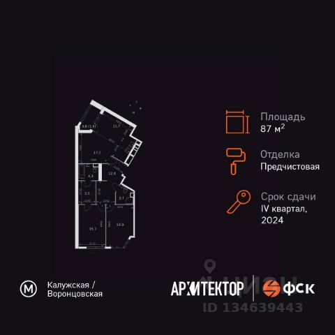 Рассрочка 0% с платежом от 120 000 ₽ в месяц. 3-комн. квартира в ЖК "Ever" на 34 этаже в 34 этажном здании Корпус 4. Общая площадь: 66.6 кв.м., жилая: 48.1 кв.м. Высота потолков 3.85 м. Top Floor — это пространство, которое сочетает в себе уникальный комфорт и элегантность. Увеличенная высота потолков создает ощущение простора и свободы, позволяя свету беспрепятственно заполнять каждый уголок. Здесь вы можете наслаждаться завораживающими панорамными видами на Сити, здание МГУ и Воронцовский парк, которые открываются из больших окон. Каждое утро вы встречаете, глядя на величественные силуэты, которые становятся частью вашего повседневного вдохновения. Город оживает перед вами, и каждый момент наполняется новыми впечатлениями. Утренние лучи солнца отражаются на стеклах, а вечерние огни создают атмосферу магии и уюта. Top Floor — это не просто место для жизни, это возможность наслаждаться атмосферой мегаполиса, оставаясь в уединении. Широкие пространства позволяют вам организовать интерьер по своему вкусу, а высокие потолки придают помещению особую элегантность. Вы можете создавать здесь уютную атмосферу для встреч с друзьями или просто наслаждаться уединением, наблюдая за жизнью города. Это место, где каждый день наполняется новыми красками и возможностями. Top Floor — ваш личный уголок, где царит гармония и комфорт, а виды на Москву становятся фоном для вашей жизни. Жилой комплекс EVER — это гармоничное сочетание динамики мегаполиса и умиротворенности природы. Всего семь минут неспешной прогулки отделяют вас от станции метро ""Калужская"", обеспечивая быстрый доступ ко всем преимуществам жизни в Москве. Вернувшись домой, вы попадаете в атмосферу спокойствия и комфорта. Продуманная инфраструктура комплекса включает в себя не только уютные квартиры, но и удобный подземный паркинг, избавляющий вас от хлопот с поиском места для парковки, а также индивидуальные кладовые помещения, где можно хранить все необходимое. В EVER вы найдете идеальное сочетание комфорта и удобства, позволяющее наслаждаться всеми преимуществами жизни в столице, не забывая о важности спокойствия и близости к природе.