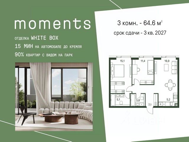 Цена указана с учётом скидки при 100%-й оплате, несубсидированной ипотеке, рассрочке (кроме программы "Рассрочка 0%"). Продается 3-комнатная квартира площадью 92.50 кв. м без отделки. Квартира находится на 3 этаже 20-этажного корпуса 3, в новом жилом комплексе бизнес-класса Level Войковская, расположенном рядом с живописным заповедником "Покровское-Стрешнево" (застройщик - компания Level Group/Левел групп). Прекрасная транспортная доступность - 7 мин. пешком до станции МЦК "Балтийская"; - 15 мин. пешком до станции метро "Войковская"; - 8 мин. на машине до ТТК; - 15 мин. на машине до центра Москвы; - 20 мин. на машине до Москва-Сити. Продуманный архитектурный проект - стильная архитектура от мастерской Фефелова В. В.; - панорамные виды на парки, Химкинское водохранилище и Останкинскую башню; - лобби с высотой потолков до 6,45 метров; - более 20 видов планировочных решений, включая редкие форматы квартир с террасой и увеличенной высотой потолков до 5,42 метров; - 2 варианта дизайнерской отделки в корпусе 4, предлагаются как дополнительная опция к отделке white box: стиль Modern в светлых холодных тонах и стиль Classic в нейтральной бежевой гамме. Квартиры в корпусах 3 и 5 сдаются без отделки. Расположение Level Войковская строится в престижном Северном округе Москвы. Развитая инфраструктура и живописная природа переплетаются в единый ансамбль, столь значимый для комфортной жизни. Войковский район окружают парки и набережные. В шаговой доступности - парк "Покровское-Стрешнево", не более 15-ти минут на велосипеде занимает путь до Тимирязевского парка и 9-ти минут до парка усадьбы Михалково. Рядом более 60 школ, 75 дошкольных учреждений, 17 государственных и 6 частных вузов, 25 супермаркетов, 4 торговых центра, среди которых ТЦ "Метрополис" и ТЦ "Авиапарк". Внутренняя инфраструктура На территории жилого комплекса предусмотрены коммерческие помещения: кафе, ресторан, пекарня и другие сервисы откроются на первых этажах корпусов. Для жителей будет доступен отапливаемый подземный паркинг на 244 машино-места с доступом с любого этажа на лифте. На территории паркинга будет расположено 125 кладовых помещений для хранения сезонного инвентаря. Лобби и благоустройство Дизайн лобби Level Войковская создан совместно с бюро BLANK. Это уютные гостиные, где хочется задержаться. Теплая цветовая гамма, ресепшен, зоны ожидания, лапомойки и гостевые санузлы - каждая деталь превращает лобби в комфортное продолжение вашего дома. 1,15 га площади в первых двух этапах строительства отведено под приватный внутренний двор, который спроектирован совместно с бюро "Правда". Детские площадки для всех возрастов, спортивные пространства для йоги, воркаута и петанка, уютные зоны для тихого отдыха или работы. Здесь утро начинается с вдохновения, а вечер наполнен приятными моментами. Лифты Комфортное перемещение внутри жилого комплекса будут обеспечивать надёжные лифты с доступом в паркинг с жилых этажей. В каждом корпусе предусмотрено по 3 грузопассажирских лифта.