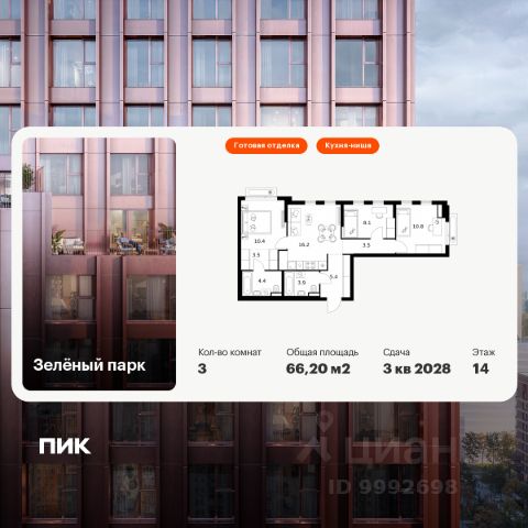 Продаётся 3-комн. квартира площадью 65,3 кв.м на 3 этаже 13 этажного дома (Корпус 5.3, Секция 2) проекта ПИК Зелёный парк. Светлый просторный подъезд на уровне земли, функциональная планировка, большие окна, c отделкой. Большой квартал с оригинальной архитектурой в обжитом районе Зеленограда. От него до станции МЦД-3 "Зеленоград-Крюково" — 20 минут пешком, до Кутузовского шоссе можно доехать на машине за 3 минуты, а до Пятницкого шоссе — за 5 минут. Характер "Зелёного парка" отражён в архитектуре. Квартал состоит из уютных разноэтажных блоков с оригинальными акцентами. Цветовая палитра проекта спокойная и сдержанная: оттенки белого и коричневого сочетаются с пастельным розовым и мятным. В проекте запланированы также два детских сада, две школы и паркинг. На первых этажах откроются магазины, кафе и другие сервисы — чтобы купить кофе и свежий хлеб к завтраку, можно будет просто спуститься на лифте. В уютных дворах-парках появятся места для отдыха, детские площадки, кофейни и зоны отдыха. Рядом — Зеленоградский лес, Парк Победы и Михайловский пруд, где можно гулять и заниматься спортом. У жителей "Зелёного парка" будет возможность получить московскую прописку. Для любителей спорта в 10 минутах пешком от квартала — велодром с BMX-трассой, физкультурно-оздоровительный комплекс Горизонт, а также лыжероллерная трасса длиной около 3 км. Артикул 1030944 (Застройщик АО "СПЕЦИАЛИЗИРОВАННЫЙ ЗАСТРОЙЩИК "ЗЕЛЕНОГРАДСКИЙ")