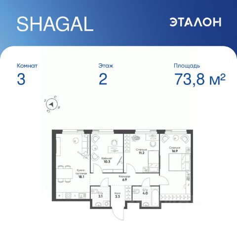 Продается 3-к квартира без отделки в ЖК "Shagal". Общая площадь квартиры — 74.5 кв. м, этаж 17 из 18. Тип дома — монолитный. Цена указана при 100% оплате. Квартал Shagal — крупнейший проект комплексного освоения в Москве. В проекте реализуется продуманная система маршрутов. Еда, покупки, услуги, прогулки, спорт, образование, работа и развлечения — все будет находиться рядом с домом: принцип 15-минутной доступности инфраструктуры и сервисов. Разнообразие и продуманность пешеходных маршрутов, а также короткие расстояния между основными точками притяжения мотивируют резидентов Shagal с удовольствием передвигаться по району пешком, не выпадая из ритма большого города. Продуманная транспортная сеть района и безопасный скоростной режим создают комфортные условия для перемещений любым способом: на автобусе, машине, самокате или велосипеде. Не нужно выезжать из района, чтобы получить комфорт и сервис самого высокого современного стандарта: все необходимые услуги, инфраструктура, парки и вторая по протяженности набережная в городе — на расстоянии 15-минутной прогулки от вашего дома. Квартал Shagal станет первым в Москве жилым районом, где будут комплексно реализованы инновационные подходы в проектировании и строительстве зданий. Архитектурная композиция состоит из домов отличающегося типа. Высотные башни-доминанты с видовыми квартирами, дома пониже, растворяющиеся в спокойствии внутренних двориков, малоэтажные камерные таунхаусы и разноэтажные дома с лоджиями на первой береговой линии соединяются в одно эстетичное современное произведение. В результате создаётся насыщенное идентичное пространство, подчёркнутое плавностью природных форм, наполненное светом, воздухом и свободой.