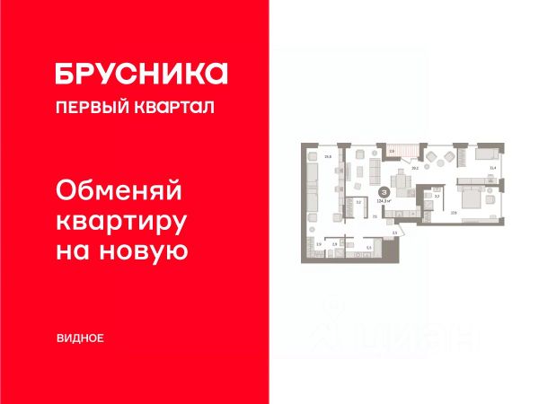 Квартира с кухней-гостиной и тремя спальнями в Квартале Герцена. Особенности планировки: балкон, второй санузел, гардеробная, окна на две стороны, постирочная, предчистовая отделка. Квартиру можно купить онлайн. В квартире выполнена отделка "под чистовую". Установлены окна с двойным стеклопакетом, радиаторы с терморегуляторами. На полу цементно-песчаная стяжка. В квартиры заведены кабели для интернета и ТВ. Входная сейф-дверь не требует замены. Организован поквартирный учёт энергоресурсов (водоснабжение, отопление, электричество). Квартал "Герцена" расположен в Бирюлёве Восточном — районе на юге Москвы. Дорога до ТТК займет всего полчаса на автомобиле, до станции метро и ж/д станции "Царицыно" — 13 минут, а до автовокзала "Южные ворота" — 20 минут. До автобусных остановок можно дойти пешком. В 2027-2028 году откроется новая станция метро "Лебедянская", дорога до неё займет всего 18 минут. Общая площадь "Квартала Герцена" составляет 27,3 га. Дома состоят из разноуровневых секций высотой от 6 до 55 этажей с видовыми террасами и балконами. На территории квартала будет построена поликлиника, детский сад на 350 мест и воспитательно-образовательный комплекс на 1075 мест, а также рестораны, клиники, магазины и салоны красоты. Объявление от застройщика. Ипотека, материнский капитал. Обмен — один из способов покупки. Обмен подойдёт, если вы хотите быстро поменять старую квартиру на новую. Получить ипотеку или рассрочку, а также обменять квартиру можно онлайн. Запишитесь на онлайн-презентацию по телефону или на сайте. В проекте доступна программа обмена: мы выкупим вашу старую квартиру, направим средства на оплату новой и сопроводим сделку. Доступны опции: проживание до 30 месяцев, закрытие ипотеки, выделение детских долей, получение средств на ремонт. квартиры в нашей базе: ГРЦ01.2-Ж4.5.14.