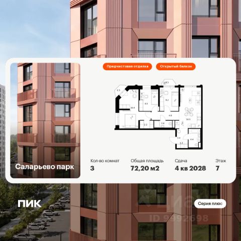 Продаётся 3-комн. квартира площадью 72,2 кв.м на 7 этаже 24 этажного дома (Корпус 82.4, Секция 4) проекта ПИК Саларьево парк. Светлый просторный подъезд на уровне земли, функциональная планировка, большие окна, предчистовая отделка. Жилой район "Саларьево парк" расположен в Новой Москве, в четырёх километрах от МКАД по Киевскому шоссе. Две станции метро: "Саларьево" и "Филатов луг", — находятся в пешей доступности от проекта. Дойти до них можно за 510 минут. В квартале уже создана качественная среда, где есть абсолютно всё для полноценной жизни, работы и отдыха. Благодаря удобному расположению проекта всё важное будет рядом: детские сады, школы, кафе и рестораны, шопинг в торговых центрах, фитнес и даже аэропорт. Все корпуса в квартале гармонично сочетаются, образуя единую городскую среду. Между собой их объединяет невысокая этажность и натуральная цветовая гамма. Здесь приятно гулять и проводить время на улице всей семьёй. В "Саларьево парке" создана уникальная образовательная среда, включающая в себя шесть школ, рассчитанных на 6 250 учеников. Две из них уже открыты, их посещает 2 300 детей. Также на территории "Саларьево парка" находится 12 детских садов, один из которых с бассейном. Сейчас уже открыты 7 садов. В "Саларьево парке" открыта уникальная игровая площадка — PlayHub "Оригами". Здесь есть ручей, горка-труба и рельефные холмы. Взрослые смогут отдохнуть в уютном кафе, пока дети играют. Также на территории проекта есть SportHub — большая спортивная зона, разделённая по интересам и возрастам. Здесь можно заниматься разными видами спорта: футболом, баскетболом, волейболом и стритболом. Зимой центральную часть площадки превращают в каток. Во дворах-парках жилого квартала есть места для отдыха, детские и спортивные площадки. На первых этажах домов расположены магазины, кафе и полезные сервисы. Также вблизи проекта есть несколько масштабных торговых центров. До ТЦ "Саларис" пять минут пешком, до "Рио", Metro Cash & Carry и "Леруа Мерлен" — пять минут на автомобиле. Артикул 1032578 (Застройщик ООО "Специализированный Застройщик "Тирон") 3-комнатная квартира в новостройке в поселении Московский в Москве.