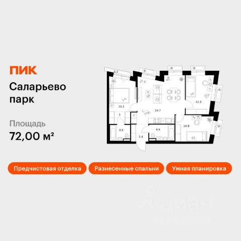 Продаётся 3-комн. квартира площадью 60,3 кв.м на 11 этаже 14 этажного дома (Корпус 74.3, Секция 3) проекта ПИК Саларьево парк. Светлый просторный подъезд на уровне земли, функциональная планировка, большие окна, предчистовая отделка. Жилой район "Саларьево парк" расположен в Новой Москве, в четырёх километрах от МКАД по Киевскому шоссе. Две станции метро: "Саларьево" и "Филатов луг", — находятся в пешей доступности от проекта. Дойти до них можно за 510 минут. В квартале уже создана качественная среда, где есть абсолютно всё для полноценной жизни, работы и отдыха. Благодаря удобному расположению проекта всё важное будет рядом: детские сады, школы, кафе и рестораны, шопинг в торговых центрах, фитнес и даже аэропорт. Все корпуса в квартале гармонично сочетаются, образуя единую городскую среду. Между собой их объединяет невысокая этажность и натуральная цветовая гамма. Здесь приятно гулять и проводить время на улице всей семьёй. В "Саларьево парке" создана уникальная образовательная среда, включающая в себя шесть школ, рассчитанных на 6 250 учеников. Две из них уже открыты, их посещает 2 300 детей. Также на территории "Саларьево парка" находится 12 детских садов, один из которых с бассейном. Сейчас уже открыты 7 садов. В "Саларьево парке" открыта уникальная игровая площадка — PlayHub "Оригами". Здесь есть ручей, горка-труба и рельефные холмы. Взрослые смогут отдохнуть в уютном кафе, пока дети играют. Также на территории проекта есть SportHub — большая спортивная зона, разделённая по интересам и возрастам. Здесь можно заниматься разными видами спорта: футболом, баскетболом, волейболом и стритболом. Зимой центральную часть площадки превращают в каток. Во дворах-парках жилого квартала есть места для отдыха, детские и спортивные площадки. На первых этажах домов расположены магазины, кафе и полезные сервисы. Также вблизи проекта есть несколько масштабных торговых центров. До ТЦ "Саларис" пять минут пешком, до "Рио", Metro Cash & Carry и "Леруа Мерлен" — пять минут на автомобиле. Артикул 1006509 (Застройщик ООО "Специализированный Застройщик "Тирон") 3-комнатная квартира в новостройке в поселении Московский в Москве.