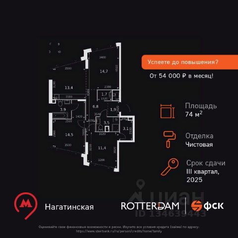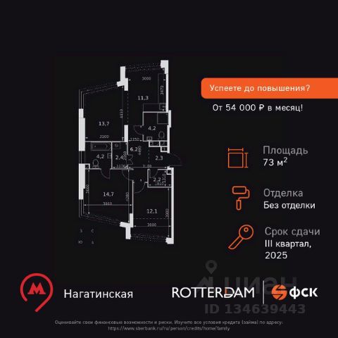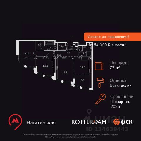 Продаётся просторная 3-комнатная квартира площадью 77,5 м², расположенная на 23 этаже корпуса 2.1 — идеальный выбор для тех, кто ценит эстетику высоты, панорамы города и современный премиум-класс. С декабря 2025 года совместно со Сбер действует ипотечная программа с фиксированной ставкой 13,9% на весь срок кредитования. Также доступна программа рассрочки с комфортными фиксированными платежами от 60 000 рублей до октября 2028 года. Подробности — у менеджеров отдела продаж в онлайн-чате справа. Первый Нагатинский — самый крупный жилой квартал в локации, формирующий новый облик района и задающий стандарты городского премиум-класса. Проект сочетает продуманную архитектуру, премиальные общественные пространства и масштабную инфраструктуру, создавая среду, где вдохновение и удобство встречаются ежедневно. Транспортная доступность Находится в сердце Южного округа Москвы — районе с уже сложившейся и богатой инфраструктурой. Внешняя среда проекта усиливает комфорт жизни: рядом расположены зелёные парки, современные спортивные объекты, торговые центры и престижные образовательные учреждения. м. Нагатинская ~ 3 мин. МЦК Верхние котлы ~ 5 мин. Речной причал ~ 15 мин. ТТК ~ 10 мин. Садовое кольцо ~ 15 мин. Благоустройство премиального уровня Ландшафтные архитекторы бюро А4 создали систему взаимосвязанных пространств для отдыха, прогулок и гармонии. Уникальная wellness-зона вписана в природный ритм Москвы и формирует атмосферу спокойствия. • 10 000 зелёных насаждений • Японский сад • Зона у огня с биокамином • Зона у воды • Арт-тропа "Променад" • Воркаут-площадка • Гамаки для отдыха • Нетворкинг под открытым небом Инфраструктура нового поколения Квартал формирует современный формат городской жизни, объединяя приватность, удобство и пространство для развития. Всё расположено внутри проекта — без необходимости покидать территорию. • Скай-бар на 28 этаже • Гурме-вилла • Приватный СПА и фитнес премиум-класса • Тренажёрный зал и студии групповых тренировок • Хамам и финская сауна • Коворкинг-клуб • Клубный лаундж • Кинотеатр и сигарная комната • Музыкальная студия • Арт-зал с подиумом • Детские комнаты, игровые зоны и творческие студии • Круглогодичные детские площадки • Пляжный клуб на берегу Москвы-реки Образовательный кластер внутри квартала Внутри квартала созданы пространства для образования, творчества и игр, где дети могут развиваться, раскрывать таланты и чувствовать себя в безопасности — не покидая территории своего дома. Школа нового поколения на 1000 учеников Лучший детский сад в Москве с бассейном Тематическая детская площадка Гора Фудзияма и Большая волна Продам 3-комнатную квартиру в новостройке в районе Нагатино-Садовники в Москве.