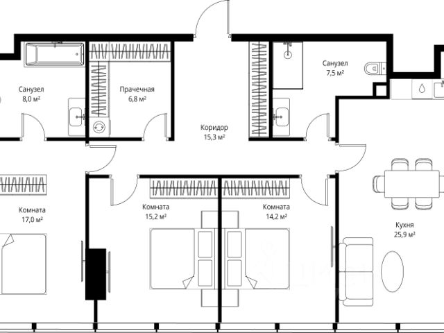 Старт продаж! Квартиры в Москва-Сити в самой инновационной башне One. В продаже 3-комнатная квартира площадью 107.70 м² на 60-м этаже. Новый современный жилой комплекс премиум-класса One расположен в самом сердце деловой жизни столицы — в Москва-Сити, где захватывающая дух архитектура встречается с безупречным уровнем комфорта. One находится в Пресненском районе, в пешей доступности от станции метро "Деловой центр". Проект был разработан выдающимся архитектором Сергеем Кузнецовым при участии международного бюро Gensler. Уникальная скульптурная форма башни, вдохновленная лентой Мебиуса, создает новый узнаваемый силуэт делового центра и задает непревзойденный стандарт вертикальной жизни. По замыслу архитекторов, жилой комплекс представляет собой две вертикальные башни, соединенные в нижней и верхней точках. На 85 этаже расположен Sky Garden — самый высокий в Европе парк с оазисом природы и секретным садом в облаках, а на 83 этаже парит стеклянный мост Sky Bridge с панорамными видами. Важнейшей особенностью комплекса является его всесторонняя инфраструктура по принципу All-in-One: закрытый клуб с лаунжами, приватным кинотеатром, бильярдной, рабочими зонами и фитнесом. Здесь же расположена торговая галерея бутиков и премиальный гастро-кластер, концепцию которого разработал известный ресторатор Александр Сысоев. Особенности комплекса: - Эксклюзивная архитектура от главного архитектора Москвы - Самый высокий в Европе небесный сад Sky Garden на 85 этаже - Панорамное остекление от пола до потолка во всех квартирах - Smart-инженерия и сервис уровня пятизвездочного отеля - Приватная клубная инфраструктура All-in-One - Трехуровневый паркинг с зарядными станциями для электрокаров - Круглосуточная безопасность и консьерж-сервис Расположение комплекса: - Пешая доступность от станции метро "Деловой центр" - 2 минуты до Экспоцентра - 5 минут до Дома Правительства - 7 минут до Кутузовского проспекта Продается 3-комнатная квартира в новостройке в районе Пресненский в Москве.