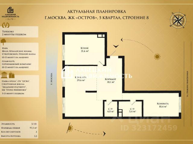 В нескольких минутах ходьбы от ОСТРОВА 2 расположена станция метро "Терехово" БКЦ, от которой всего 5 станций до "Делового центра" и 6 станций до "Баррикадной". Для автомобилистов удобны выезды на ул. Нижние Мневники, ул. Крылатскую и Рублевское шоссе (юго-запад) и Карамышевскую набережную (север). До "Москва Сити" можно доехать на автомобиле за 10 минут, а до Садового кольца - за 15.