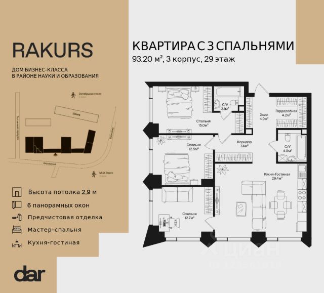 Цены указаны с условием 100% оплаты и стандартной ипотеки. Продается 3-к. квартира номер 723 общей площадью 81.2 кв.м. на 28-м этаже 40 этажного дома, корпус 2.3. С отделкой White Box. Moments — ЖК бизнес-класса, расположен на расстоянии вытянутой руки от старинного усадебного парка Покровское-Стрешнево. Moments — это единение города и природы, дом, который помогает обрести гармонию и баланс в жизни. Moments расположен на Волоколамском шоссе с удобным выездом в центр и в область, а также с расположенными в пешей доступности объектами транспортной инфраструктуры (МЦК и МЦД-2). Жилой комплекс будет состоять из 3 очередей — 8 корпусов высотой от 4 до 47 этажей. Здания будут расположены под разными углами для максимальной открытости солнцу и максимально роскошным видовым характеристикам. Внутренний двор: Иммерсивное благоустройство от британского бюро Gillespies и West8 сфокусировано на эмоциональном и чувственном опыте. Каждая прогулка по Moments погружает в путешествие со сменой сценариев и плавным потоком уникальных моментов. - Пешеходная экотропа,которая соединяет комплекс с парком Покровское-Стрешнево - Двор с фонтаном - Зеленые сады и лаунж-зоны - Пространства для пикников и общения - Зоны активного отдыха. Детские и спортивные площадки - Пешеходные тропы и велодорожки - Разнообразная коммерческая инфраструктура - Детский сад на 175 мест - Школа на 300 мест - Игровые площадки из натуральных материалов - Сенсорные сады - Безбарьерное зонирование Продается 3-комнатная квартира в новостройке в районе Щукино в Москве.