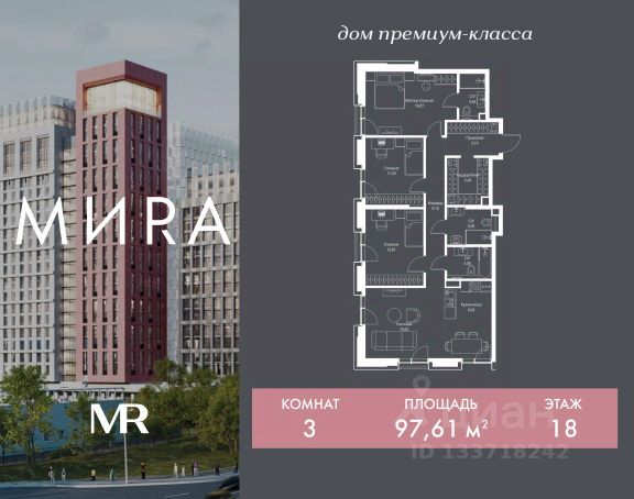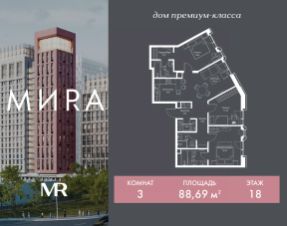 Прямая продажа от застройщика. Продаётся 3-комнатная квартира общей площадью 83.33 м² без отделки в доме премиум-класса МИRА на 4-м этаже 17 этажного дома. Квартира расположена в корпусе 1. Дом премиум-класса МИRA это: • Спокойный район с богатой историей и сложившейся инфраструктурой • Авторская архитектура на стыке классики и современности • Вход в парк прямо из жилого комплекса • Панорамные виды на Яузу, парки, ВДНХ и скульптуру "Рабочий и колхозница" • Удобные сервисы и безопасность для каждого резидента Расположение: Жилой квартал расположен в Алексеевском районе на северо-востоке Москвы, на второй линии домов, таким образом вы сможете дистанцироваться от шума и суеты проспекта Мира, но при этом будете жить недалеко от этой важной городской магистрали. Прямо у дома: • Парк Акведук • Река Яуза • Памятник "Рабочий и колхозница" Пешком: • 16 мин м. ВДНХ На автомобиле: • 12 мин ТТК • 15 мин Садовое кольцо • 12 мин Национальный парк "Лосиный остров" Благоустройство: Концепция благоустройства от бюро "ДРУЖБА" разработана в стиле "Лесная тропа". В уютном дворе расположились словно затерянные в лесу, площадки для отдыха. Они разделяются островками с травами, кустарниками, крупными камнями и деревьями, между которыми проходят узкие песчаные тропинки с деликатной подсветкой по вечерам. Центральной точкой притяжения для жителей станет главная площадь с фонтаном, которая открывается сразу из двух входных групп. Внутренний двор МИRA: • Детская площадка с зонами для игр малышей до трех лет и детей более старшего возраста • Спортивная площадка с профессиональным оборудованием для тренировок • Декоративные перголы • Воздушный арт-объект с подсветкой, похожий на облако • Чайный домик, где в отдельном отапливаемом павильоне можно в любое время года попить кофе с соседями или устроить камерное семейное чаепитие • Зоны для работы и отдыха с гамаком под навесом, скамейками и креслами Инфраструктура и окружение: В Алексеевском районе есть огромные благоустроенные парки, магазины, гимназии с высоким рейтингом и филиалы ВУЗов, частные и государственные детские сады, модные кофейни и фитнес-центры. В квартале МИRА предусмотрены: • 2 ресторана с видом на парк Акведук • 3 кафе • фитнес-студия • подземный паркинг на 330 машино-мест Компания MR предлагает своим клиентам специальные условия приобретения квартир в рамках программ ипотечного кредитования от банков-партнеров. Продам 3-комнатную квартиру в новостройке станция Ботанический сад (МЦК).