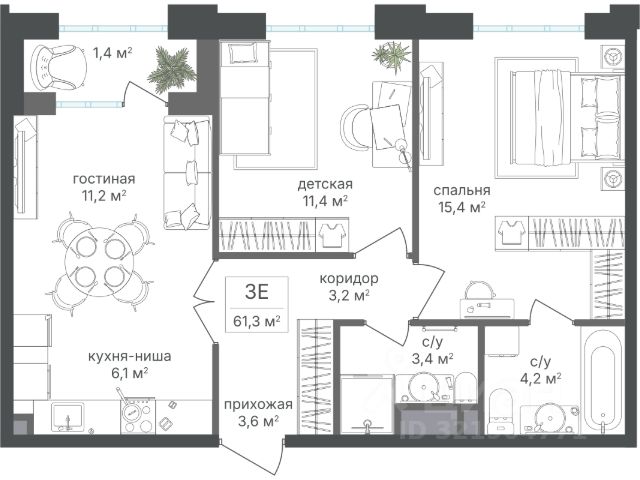 413 140 ₽/м²