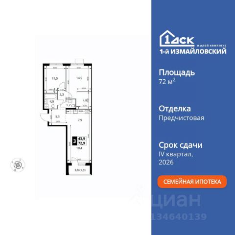 Прямая продажа от застройщика! Жилой Комплекс Комфорт класса. Продаётся 3-к квартира номер 323 общей площадью 66.4 кв.м. на 23-м этаже 25 этажного здания. Без отделки. Цена с учётом скидки. Особенности квартиры: - Организуем показ в удобное для вас время! - Просторная спальня, в которой можно разместить большую кровать. - Линейная планировка - максимальная функциональность и удобство. - Просторная ванная - место для расслабления и уединения. - Раздельный санузел - больше удобства для всех членов семьи. - Евроформат - просторное и удобное жилье с отличной планировкой. - Место для игры/занятия спортом - идеальное пространство для активных детей. - Можно оборудовать 2 или более рабочих места - пространство для нескольких человек. - Возможность добавить спальное место - дополнительный комфорт для гостей. - Ниша под шкаф - компактное и удобное место для вещей. - Лоджия - уютное место для отдыха и тишины. Квартира без отделки. Чистый холст для воплощения интерьера вашей мечты. Информация о комплексе: ЖК "1-й Измайловский" в восточной части Москвы: идеальное место для жизни в окружении 14 000 гектаров леса. Наслаждайтесь лыжными прогулками зимой и пробежками летом в сиреневом саду и лесопарках. Комплекс отгорожен от шоссе застройкой первой линии и садами здоровья. Из окон открываются виды на парк "Лосиный остров" и зеленые дворы. Близость к природе и спортивным объектам создаёт атмосферу здорового образа жизни. Транспортная доступность: Не более 2,5 км до станций метро "Щёлковская" и "Черкизовская" и МЦК "Локомотив". Щёлковское шоссе соединяет квартал с Северо-восточной хордой и МКАД, Центральным автовокзалом и Восточным железнодорожным вокзалом. Две автобусные остановки в паре минут ходьбы и 11 маршрутов общественного транспорта. На автомобиле 3 минуты до СВХ 12 минут до ТТК 15 минут до Садового кольца Внутренняя инфраструктура: ЖК расположен в историческом районе Москвы с развитой инфраструктурой. В шаговой доступности: 6 детских садов (включая собственный на 125 мест), 3 школы, поликлиники, торговые центры и парки. Проект создан для здорового образа жизни: рядом стадионы, спортивные объекты для футбола, баскетбола и конного спорта, а также более 30 км беговых и велодорожек. Всё для активной жизни в окружении зелени и современной инфраструктуры. Квартира без отделки - чистый холст для вашего интерьера.