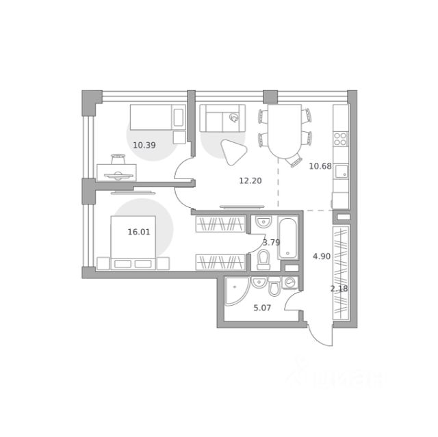 Продается квартира с 2 спальнями и кухней-гостиной в комплексе бизнес-класса "Дом на Зорге". Квартира расположена на 14 этаже в секция 2 с предчистовой отделкой white box площадью 69 м² . Удобная правильная планировка квартиры, с хорошими видовыми характеристиками.