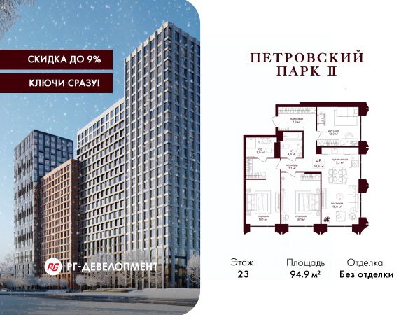 Рассрочка 0%. Первый платёж 30%, второй - не позднее 31.12.2026 г. Продаётся 3-комнатная квартира 102.3 кв.м. в ЖК "Петровский парк II" на 22-м этаже 25 этажного дома. ЖК "Петровский парк II" — жилой комплекс в Савёловском районе, где город ощущается иначе. Здесь история и масштаб Москвы не давят, а задают фон для спокойной, уверенной жизни рядом с центром. Это место, где статус читается не в громких формулировках, а в окружении, архитектуре и ощущении пространства. Коротко о важном: • Район с глубоким историческим контекстом и парковым окружением; • 5 минут пешком до метро "Динамо", рядом с деловой и культурной жизнью города; • Редкое сочетание: энергия мегаполиса и тишина зелёных аллей; • Архитектура от бюро Syntaxis с пластикой форм и индивидуальным характером фасадов; • Панорамные виды на город и зелёные массивы Петровского и Тимирязевского парков; • Закрытый двор без машин, вдохновлённый эстетикой дворцовых садов; • Просторные гранд-лобби с высокими потолками и выверенной, респектабельной эстетикой; • Частный детский сад во дворе; • Подземный паркинг и кладовые; • РГ-Девелопмент - ТОП-20 крупнейших застройщиков Москвы. Расположение комплекса формирует особое ощущение свободы выбора. Утром - прогулка по тенистым аллеям Петровского парка, днём - работа и встречи в деловых кластерах поблизости, вечером - культурные события, рестораны и городские пространства в нескольких минутах пути. Здесь расстояния измеряются не километрами, а шагами от дома. Архитектура "Петровского парка II" задумана как современная доминанта района и одновременно как уважительный диалог с исторической средой. Асимметричные объёмы, волнообразные элементы и игра света и тени создают выразительный, но сдержанный силуэт. Архитектура наполнена воздухом и визуальным ритмом, оставаясь спокойной и уверенной. Общественные пространства продолжают эту логику. Два гранд-лобби с высокими потолками и благородной цветовой палитрой воспринимаются как пространства, где хочется замедлиться: встретить гостей, перевести дыхание после дня или просто почувствовать уровень среды, в которой вы живёте. Внутренний двор комплекса - это отдельный мир, закрытый от машин и городского шума. Ландшафтный дизайн отсылает к регулярным дворцовым садам: геометрия аллей, зелёные "кабинеты", цветники и камерные зоны отдыха создают разные сценарии для повседневной жизни. Здесь органично соседствуют детские игровые пространства, плейхаб, спортивные зоны и тихие места для отдыха. На территории комплекса расположены магазины, кафе и рестораны, а также частный детский сад, встроенный в общую структуру двора. Подземный паркинг и кладовые поддерживают ощущение порядка и цельности пространства. Продается 3-комнатная квартира в новостройке на проезде Старый Петровско-Разумовский в Москве.