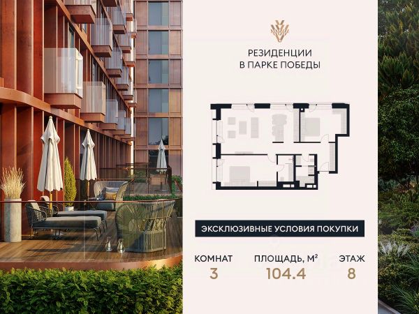 Резиденции в Парке Победы (Victory Park Residences) — это комплекс элитных семейных резиденций. Проект расположен в престижном районе Дорогомилово в одной минуте от Парка Победы, Поклонной горы и Кутузовского проспекта. Комплекс состоит из восьми элегантных корпусов, их облик разработан архитектурным бюро Сергея Скуратова. В отделке фасадов применяются натуральный камень доломит, стекло и медь. Богатая инфраструктура удовлетворит самые взыскательные запросы резидентов, к вашим услугам. Жемчужина проекта и первая в России торговая галерея "Виктори" (Victory Gallery) под управлением Гинза Проджект (Ginza Project). Это пространство, где каждая минута наполнена новыми открытиями: гранд спа с термальными источниками, салоны красоты, галерея кафе и ресторанов, выставочное пространство "территория искусств". Закрытый безопасный двор-сад "Виктори" (Victory Garden) полон возможностей наслаждаться природным пространством именно так, как вы любите. В тщательно проработанном ландшафте есть места и для уединённых размышлений, и для неспешных прогулок, и для весёлых игр с детьми, и для четвероногих друзей. В проекте представлены квартиры с панорамными окнами и высокими потолками от 3 до 3,85 метров. Квартиры с патио, пентхаусы с террасами на верхних этажах. Премиальная отделка в трех стилях на выбор. Продается 3-комнатная квартира в новостройке на улице Братьев Фонченко в Москве.