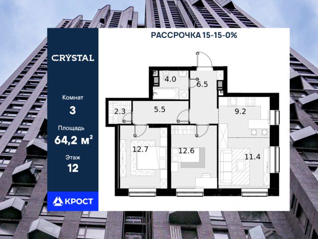 Однокомнатная квартира площадью 75,9 кв.м. на 8 этаже дома бизнес-класса "CRYSTAL Трилогия". Жилой комплекс CRYSTAL Трилогия комфорт в сердце Хорошево-Мнёвников Удобное расположение и транспортная доступность CRYSTAL Трилогия расположен в престижном районе Хорошево-Мнёвники, на улице Генерала Глаголева, всего в нескольких минутах от живописного Серебряного бора и набережной Москвы-реки. Из окон открываются панорамные виды на воду и зелёные зоны, создавая ощущение гармонии с природой. Автомобильная доступность • Звенигородское шоссе и проспект Маршала Жукова быстрый выезд в любую часть города. • 7 км до ТТК, 9 км до МКАД, 10 км до Садового кольца. • Общественный транспорт: • Ближайшая станция метро "Народное ополчение" (2 км). Добраться можно пешком или на автобусе. • В пешей доступности строятся 3 новые станции метро, что повысит транспортную связанность района. Инфраструктура: всё для жизни в шаговой доступности Комплекс входит в состав масштабного квартала Union Park (40 га) это современная городская среда с продуманной инфраструктурой. Образование и развитие: • Лучшие школы Москвы: 1515, 1517, 138, Курчатовская школа. • Детские сады: "Wow Kids Серебряный бор", логопедический "ДАРвиль". • Музыкальная школа им. В. В. Андреева. Медицина и спорт: • Поликлиника "Семейный доктор", медцентр "Мед-Лайт", стоматология. • Спорткомплекс "Серебряный" с бассейном, тренажерным залом и солярием. Магазины и рестораны: • Премиальные магазины: "Азбука вкуса", "ВкусВилл", "Лента", "Магнолия". • Рестораны и кафе: Asia Inn, Wells Home Cafe, рыбный ресторан The Mope. Футуристичная архитектура с продуманным комфортом CRYSTAL Трилогия это уникальный дизайн и эргономичные планировки: Внешний облик: • Кристаллическая архитектура с панорамными эркерами и фасадами в оттенках горького шоколада. • Трехуровневая структура, где на верхнем ярусе вы увидите геометрические эркеры с панорамным остеклением, на среднем уровне расположены квартиры с окнами на 1-2 стороны, а на нижнем отделка австрийским клинкерным кирпичом. Внутреннее пространство: • Светлые входные группы с лаунж-зонами для отдыха и мероприятий. • Подземный паркинг (по машиноместу на квартиру) и кладовые для хранения. • Закрытые дворы с спортивными зонами: • Теннисный корт. • Площадки для воркаута. • Беговые дорожки. • Поле для игровых видов спорта. Квартиры с продуманными планировками • 14 комнатные варианты. • Высокие потолки и панорамное остекление для максимальной инсоляции. • Ровные стены и черновая/чистовая отделка на выбор. • Готовые решения для комфортного заезда. Продам 3-комнатную квартиру в новостройке на улице Генерала Глаголева в Москве.
