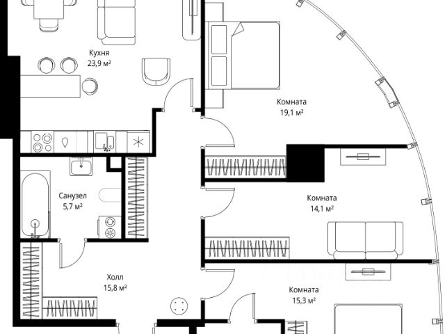 Предлагается квартира с двумя спальнями площадью 98.2 м² в комплексе премиум-класса Life Time. Квартира без отделки, что позволяет осуществить любое дизайнерское решение. Расположена на 3-м этаже в корпусе В. Потолки 3.43. Панорамные окна выходят на ул. Сергея Макеева. Возможная планировка: кухня-гостиная, 2 спальни с собственными ванными комнатами и гардеробными, санузел с постирочной, холл. Life Time—премиальный квартал, где современный ритм города гармонично сочетается с приватностью и уютом. В самом центре Пресненского района возвели четыре башни переменной этажности, разработанные архитектурным бюро Цимайло, Ляшенко и Партнеры. В лобби много света, воздуха и пространства, а уютная общественная гостиная FRIENDS LAB на втором этаже приглашает расслабиться после насыщенного дня, пообщаться с соседями или встретить гостей. Насыщенная инфраструктура и выгодное расположение дарят время для жизни. Вы больше не тратите его на дорогу или ожидание, при этом ни в чём себе не отказывая. На территории квартала находится все для комфортной жизни: просторный внесезонный двор-парк площадью 1,8 гектара. Для тех, кто ценит активный образ жизни, в комплексе открыт фитнес-зал FIT LAB, где можно начать свой день с тренировки, бассейн длиной 25 метров, хаммам, сауна, бьюти-зона. В отдельном здании работает Clubhouse инфраструктурный центр только для жителей, предлагающий возможности для спорта, отдыха и досуга. В Life Time есть всё для развития и досуга детей любого возраста, в том числе детский сад и школа. В центре двора-парка просторная зона отдыха с водоёмом, навесом и роскошной пихтой. Один собственник. Быстрый выход на сделку. Продается 3-комнатная квартира в новостройке на улице Сергея Макеева в Москве.