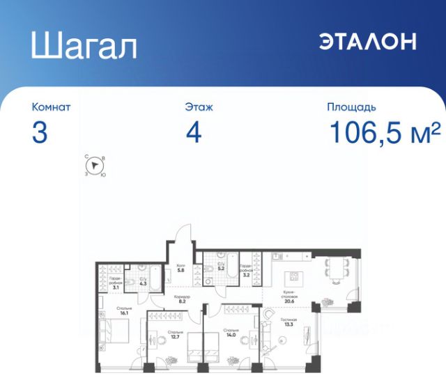 Продается 3-к квартира без отделки в ЖК "Шагал". Общая площадь квартиры — 76.1 кв. м, этаж 4 из 8. Тип дома — монолитный. Цена указана при 100% оплате. Квартал Шагал — крупнейший проект комплексного освоения в Москве. В проекте реализуется продуманная система маршрутов. Еда, покупки, услуги, прогулки, спорт, образование, работа и развлечения — все будет находиться рядом с домом: принцип 15-минутной доступности инфраструктуры и сервисов. Разнообразие и продуманность пешеходных маршрутов, а также короткие расстояния между основными точками притяжения мотивируют резидентов Шагал с удовольствием передвигаться по району пешком, не выпадая из ритма большого города. Продуманная транспортная сеть района и безопасный скоростной режим создают комфортные условия для перемещений любым способом: на автобусе, машине, самокате или велосипеде. Не нужно выезжать из района, чтобы получить комфорт и сервис самого высокого современного стандарта: все необходимые услуги, инфраструктура, парки и вторая по протяженности набережная в городе — на расстоянии 15-минутной прогулки от вашего дома. Квартал Шагал станет первым в Москве жилым районом, где будут комплексно реализованы инновационные подходы в проектировании и строительстве зданий. Архитектурная композиция состоит из домов отличающегося типа. Высотные башни-доминанты с видовыми квартирами, дома пониже, растворяющиеся в спокойствии внутренних двориков, малоэтажные камерные таунхаусы и разноэтажные дома с лоджиями на первой береговой линии соединяются в одно эстетичное современное произведение. В результате создаётся насыщенное идентичное пространство, подчёркнутое плавностью природных форм, наполненное светом, воздухом и свободой.