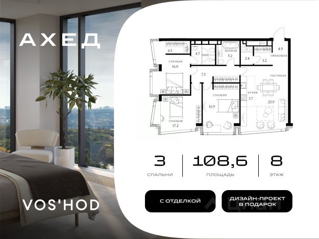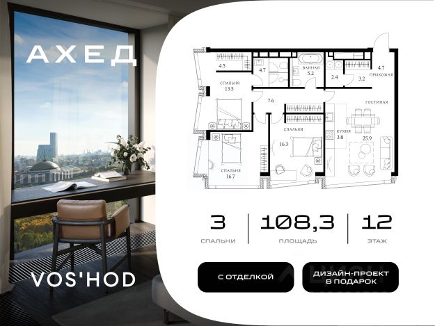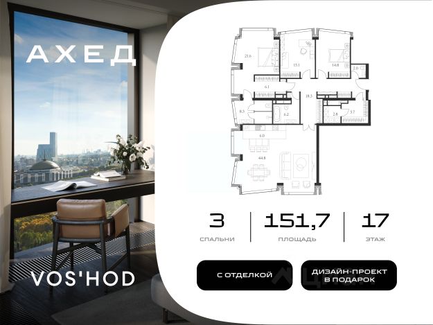 Успейте приобрести по выгодным условиям! Ahead это эксклюзивный проект в центре столицы, включающий всего 77 резиденций, что гарантирует приватность и комфорт для жильцов. Комплекс отличается авторской архитектурой от бюро "Цимайло Ляшенко и Партнёры", а из окон открываются панорамные виды на Парк Победы, Воробьёвы горы и Москва-Сити. Внутреннее пространство оформлено с особым вниманием к деталям: лобби создано студией UNK Interiors, а двор благоустроен в японском стиле с 58-метровым водопадом высотой 4,5 м и сосной "ниваки". Все резиденции предлагаются с отделкой White Box. При покупке ряда апартаментов владелец получает в качестве бонуса готовый дизайн-проект с рабочей документацией от известной студии дизайна BALCON, что в разы ускорит и упростит процесс превращения "белого листа" в продуманное и комфортное пространство для жизни. Для удобства жильцов на седьмом этаже расположен клубный этаж Sky Lobby, включающий Sky Social Club с панорамной террасой, фитнес-зону Air Fitness с кардиозоной и залом для йоги и пилатеса, а также коворкинг-трансформер с отдельной переговорной. В комплексе предусмотрен современный подземный паркинг с биометрическим контролем доступа, распознаванием госномеров и возможностью установки зарядок для электрокаров. На всей территории действует Wi-Fi. Расположение комплекса обеспечивает отличную транспортную доступность: до Москва-Сити и Киевского вокзала можно добраться за 10 минут на автомобиле, до инновационного центра Сколково — за 15 минут. Комплекс оснащён современными технологиями и системами безопасности, включая биометрический доступ по Face ID, умную систему управления домом, приточно-вытяжную вентиляцию, центральное кондиционирование и круглосуточный мониторинг. AHEAD — это пространство для комфортной жизни в сердце Москвы, где каждая деталь создана для благополучия жильцов. 3-комнатная квартира в новостройке на улице Василисы Кожиной в Москве.