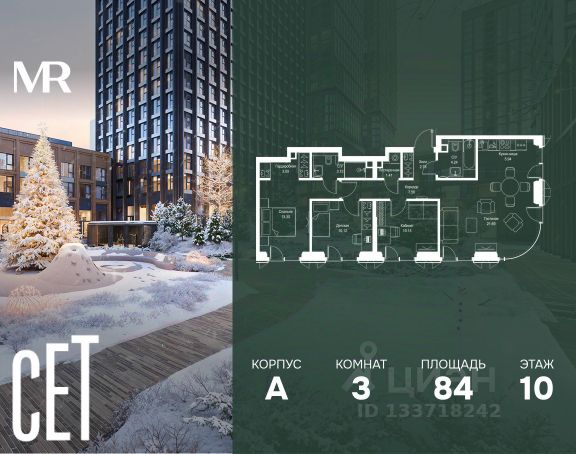 Прямая продажа от застройщика. В ЖК Сет продается 3-комнатная квартира площадью 75.18 м², расположенная в корпусе А, на 28 этаже 52 этажного дома. Сет имеет стратегически выгодное расположение в ЗАО, в районе с большой историей и блестящим будущим: между природной зоной долины реки Сетунь и Кутузовским проспектом. В рамках возведения первой очереди предусмотрено три корпуса высотой 18, 45 и 59 этажей. На верхних этажах спроектированы общедоступные смотровые площадки с панорамным обзором на центр столицы. Преимущества проекта: • Функциональные планировочные решения • Контроль проникновения через входную дверь • Система управления освещением и температурой в квартире • Система защиты от протечек с функцией перекрытия воды • Вход в подъезд по биометрическим считывателям Face ID • Скоростные лифты • Двухуровневый подземный охраняемый паркинг на 495 машино-мест Застройка Сет включает в себя не только жилые корпуса, но и инфраструктурные объекты. Все необходимое для повседневного комфорта будет расположено в шаговой доступности: • Фитнес-Клуб с бассейном • Ведущая городская школа, детский сад и школа искусств • Центр культуры и досуга • Медицинский центр • Кафе и рестораны Расположение комплекса: Пешком: • Метро "Давыдково" - 17 минут • Парк "Долина реки Сетунь" - 3 минуты • Открытие новых станций метро в шаговой доступности в будущем Инфраструктура: Разнообразить свой день резиденты Веер смогут также проводя больше времени на свежем воздухе. Двор разделен на 4 зоны разных эмоций и действий, которые пересечены и соединены веерными прогулочными маршрутами: • Спортивная площадка устроена в глубине ""Кленовой рощи"" • В ""Чайном домике"" будет создан навес с утеплением для отдыха в любую погоду • Площадки для детей воплотятся в ""Волшебный лес"" с цветами, зеркалами и световым дизайном • ""Центральная площадь"" устроена у водного оазиса живописного пруда. На машине: • "Москва-Сити" - 15 минут • Садовое кольцо - 20 минут • ТЦ "Океания" - 8 минут • ТЦ "Времена года" - 13 минут • Сколково - 12 минут • Гребной канал - 17 минут Компания MR предлагает своим клиентам специальные условия приобретения квартир в рамках программ ипотечного кредитования от банков-партнеров.