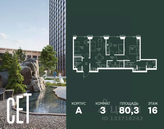 Прямая продажа от застройщика. В ЖК Сет продается 3-комнатная квартира площадью 75.18 м², расположенная в корпусе А, на 28 этаже 52 этажного дома. Сет имеет стратегически выгодное расположение в ЗАО, в районе с большой историей и блестящим будущим: между природной зоной долины реки Сетунь и Кутузовским проспектом. В рамках возведения первой очереди предусмотрено три корпуса высотой 18, 45 и 59 этажей. На верхних этажах спроектированы общедоступные смотровые площадки с панорамным обзором на центр столицы. Преимущества проекта: • Функциональные планировочные решения • Контроль проникновения через входную дверь • Система управления освещением и температурой в квартире • Система защиты от протечек с функцией перекрытия воды • Вход в подъезд по биометрическим считывателям Face ID • Скоростные лифты • Двухуровневый подземный охраняемый паркинг на 495 машино-мест Застройка Сет включает в себя не только жилые корпуса, но и инфраструктурные объекты. Все необходимое для повседневного комфорта будет расположено в шаговой доступности: • Фитнес-Клуб с бассейном • Ведущая городская школа, детский сад и школа искусств • Центр культуры и досуга • Медицинский центр • Кафе и рестораны Расположение комплекса: Пешком: • Метро "Давыдково" - 17 минут • Парк "Долина реки Сетунь" - 3 минуты • Открытие новых станций метро в шаговой доступности в будущем Инфраструктура: Разнообразить свой день резиденты Веер смогут также проводя больше времени на свежем воздухе. Двор разделен на 4 зоны разных эмоций и действий, которые пересечены и соединены веерными прогулочными маршрутами: • Спортивная площадка устроена в глубине ""Кленовой рощи"" • В ""Чайном домике"" будет создан навес с утеплением для отдыха в любую погоду • Площадки для детей воплотятся в ""Волшебный лес"" с цветами, зеркалами и световым дизайном • ""Центральная площадь"" устроена у водного оазиса живописного пруда. На машине: • "Москва-Сити" - 15 минут • Садовое кольцо - 20 минут • ТЦ "Океания" - 8 минут • ТЦ "Времена года" - 13 минут • Сколково - 12 минут • Гребной канал - 17 минут Компания MR предлагает своим клиентам специальные условия приобретения квартир в рамках программ ипотечного кредитования от банков-партнеров.