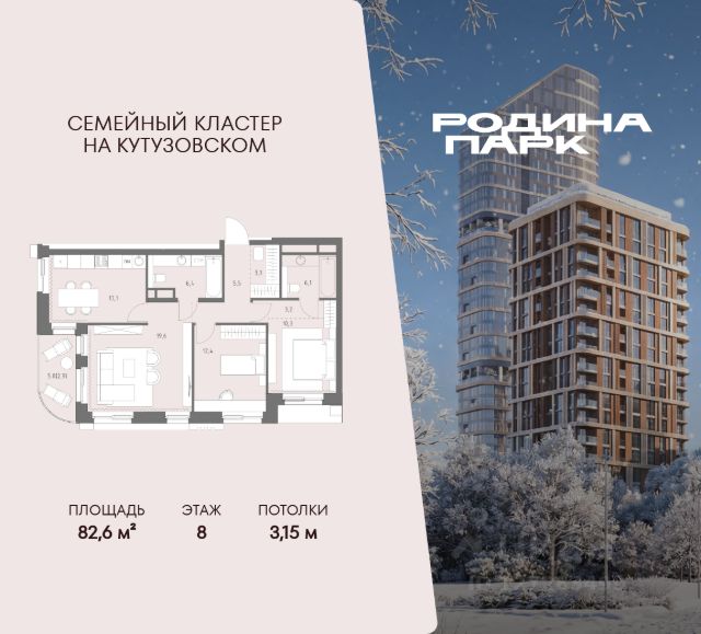 В жилом кластере Родина Парк рядом с природным заказником Долина реки Сетунь продаётся 3-комнатная квартира. Продуманная европланировка, которую легко зонировать под ваши запросы. Потолки от 3,1 м. "Родина Парк" — премиальный семейный кластер с образовательным медиакластером, строящийся на западе Москвы в окружении природного заповедника "Долина реки Сетуни". • Скидки недели на избранный пул лотов • Рассрочка 0% на выгодных условиях до 2 лет • Семейная ипотека, подбор комбо-вариантов ипотечных программ прямо в офисе продаж • Скидки 8% при 100% оплате или ипотеке. ЛОКАЦИЯ: 8 минут пешком до станции БКЛ "Давыдково". 12 минут на автомобиле до Нового Арбата. Удобные выезды на Кутузовский проспект, Аминьевское шоссе. ИНФРАСТРУКТУРА И СЕРВИСЫ ДЛЯ ЖИТЕЛЕЙ - Уникальная экосистема для развития, здоровья и творчества на территории 3,5 Га: - Первый в России образовательный медиакластер (с участием Русской медиагруппы) для творческого развития детей и взрослых с возможностью получить востребованную профессию в сфере шоу-бизнеса. - Инфраструктура и сервисы для семей с детьми на территории жилого кластера (частный детский сад, детские игровые пространства, творческие студии для занятий музыкой и танцами, безопасная и комфортная среда для детей и родителей), событийно-культурная площадка для проведения семейного досуга); - Здоровая среда (биохакинг-центр, фитнес-зал и спортивная инфраструктура во дворе, медитационные пространства, инженерные решения для освещения, свежего воздуха и очистки воды, сервисы красоты и поддержания активного долголетия); - Сервисы заботы (инфраструктура комфорта - подземный паркинг, кладовые, колясочные, консьерж- сервис, умный дом, мобильное приложение, профессиональная управляющая компания, сервисы охраны и обеспечение абсолютной безопасности) - Комьюнити резидентов (социальные пространства для дружеского и делового общения - летний атриум с уличным кинотеатром, зоны отдыха, кафе и рестораны, комьюнити-сервис с культурно- событийной программой в медиакластере); - Модуль благосостояния (комфортные пространства для работы и саморазвития - коворкинги и переговорные). ИНФРАСТРУКТУРА РАЙОНА: Насыщенная образовательная среда: филиалы МГИМО, МГУ, МГТУ, Сколково. Топовые школы: 6 лучших частных школ Москвы и области (Forbes) в 10 минутах езды. Природное окружение для пеших прогулок, спорта и отдыха. "Родина Парк" — это место, где растут и дети, и ваши возможности. Экосистема, где всё подчинено развитию — физически, профессионально, творчески.
